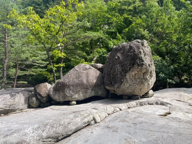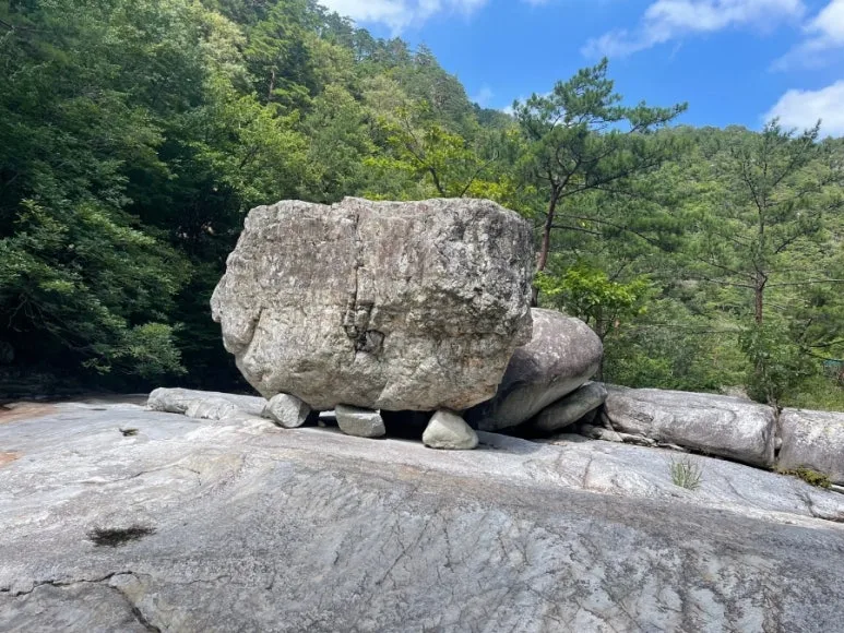 작은 돌위에 큰 바위를 올려 놓은 듯 보인다.
