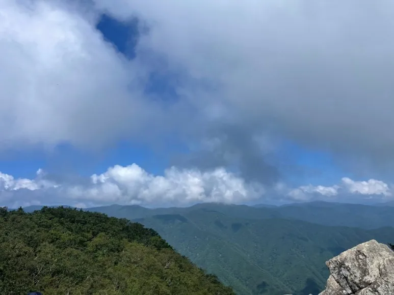 하산식 식당에서 만난 멋진 구름1) 노인봉: 오대산국립공원권에 속하는 산으로 황병산(1,407m)과 오대산(1,563m)의 중간 지점에 있으며 산자락에 소금강 계곡을 거느리고 있다. 소금강은 1970년 우리나라 명승 1호로 지정되었다. 일부에서는 연곡 소금강, 오대산 소금강, 청학동 소금강이라고도 부른다.