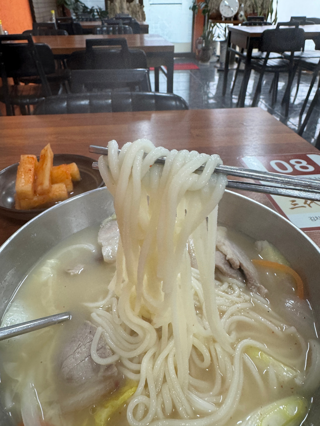 아마도 이런 음식이기에 제주도에선 애경사에 찾아온 손님들에게 이 국수 그릇이 올려진 상을 냈으리라. 애경사에 쓰기 위해 정성 들여 키운 돼지를 직접 잡아 통째로 넣고 삶은 후, 그 국물에 국수를 말아내며 힘든 발걸음을 해 준 손님들에게 감사의 마음을 전했을 것이다. 오랜 시간 정성을 들인 음식이라는 것을 손님도 알고 기꺼이 맛있게 먹고 상을 물렸을게다. 고기 한 점 한 점에 녹아든 시간과 끊임없이 이어진 국수 가락과 같은 정성을 이 한 그릇의 국수에서 보았을 것이다. 아침 해장을 위해, 그저 아침 공복을 메우기 위해 이 국숫집을 찾은 초빼이조차 섣부르게 추측할 수 있는, 국수 한 그릇에 담긴 진심이 보이지 않았을까?