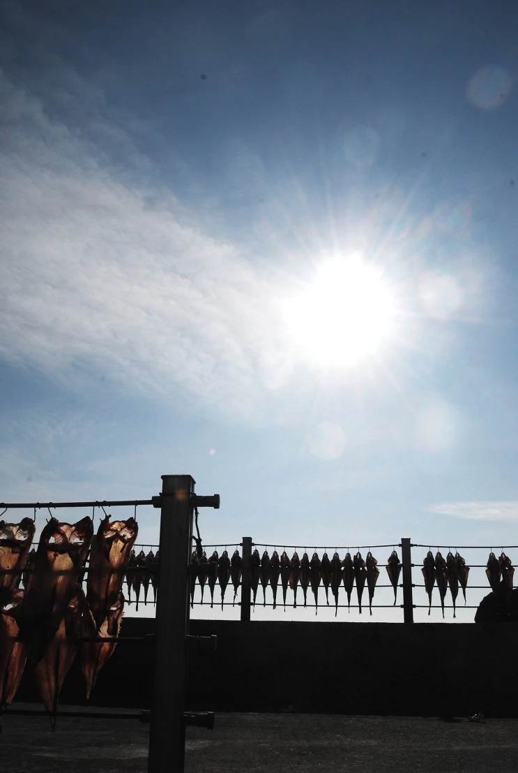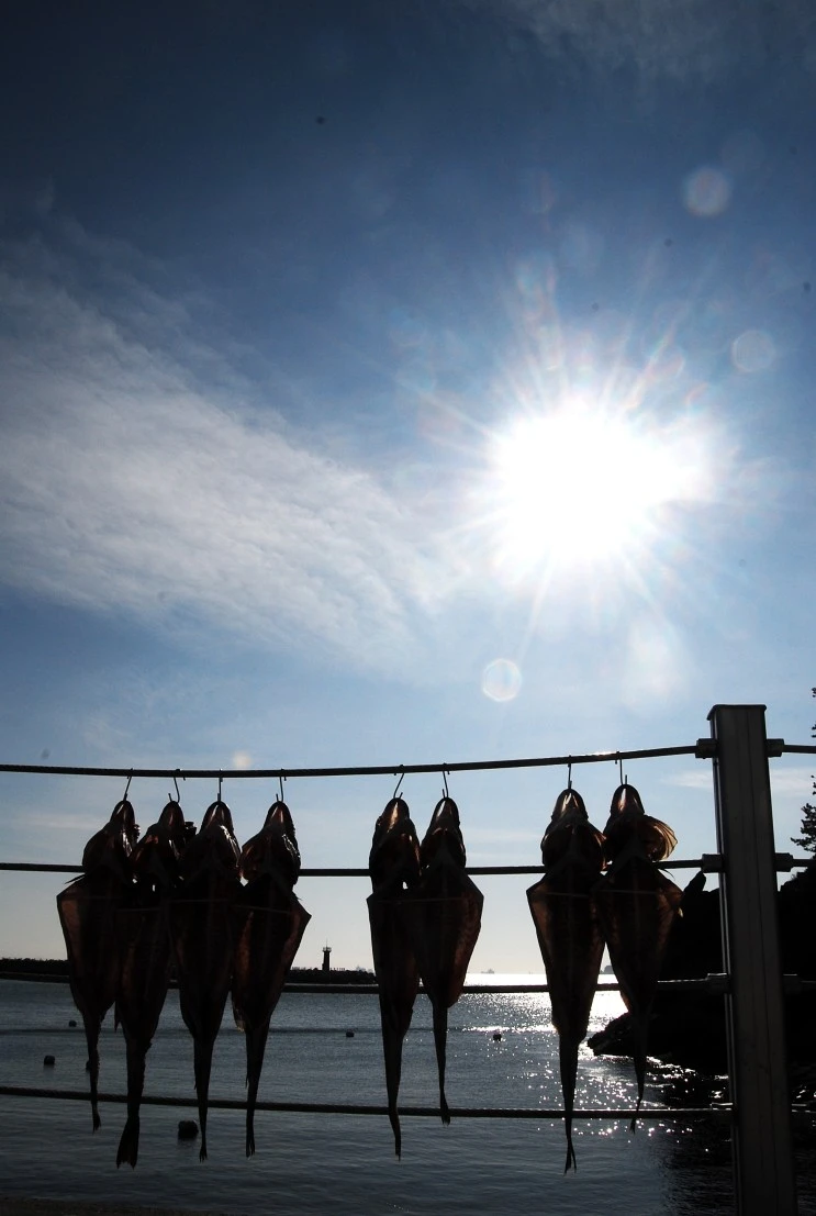 짜디 짠 바닷바람이 잔뜩 날을 벼려 살벌하게 몰아치는 겨울 초입 11월부터 1월 중순 정도의 3개월이 금어기가 풀리는 시간이기 때문. 초빼이는 12월에 외포항을 찾았다. 부산에서 개인 업무를 보고 거가대교를 지나 거제도에 차를 올리면 외포항은 지척에 있다. 겨울의 외포항을 찾으면 위의 사진과 같이 갓 잡은 대구와 물메기가 배를 드러내고 겨울 햇살에 말려지는 것을 볼 수 있다. 외포항 전체가 대구를 말리는 덕장이 되는 것.