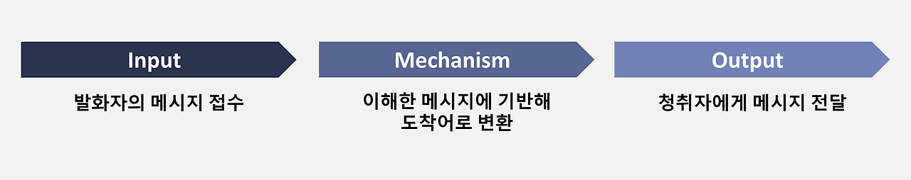 통역이라는 게임을 플레이한다는 것은 클라이언트의 발화내용을 Input으로 받아 도착어로 Output을 내는 겁니다. 그 사이에는 실질적으로 언어 간 변환작업을 처리하는 메커니즘이 있습니다.