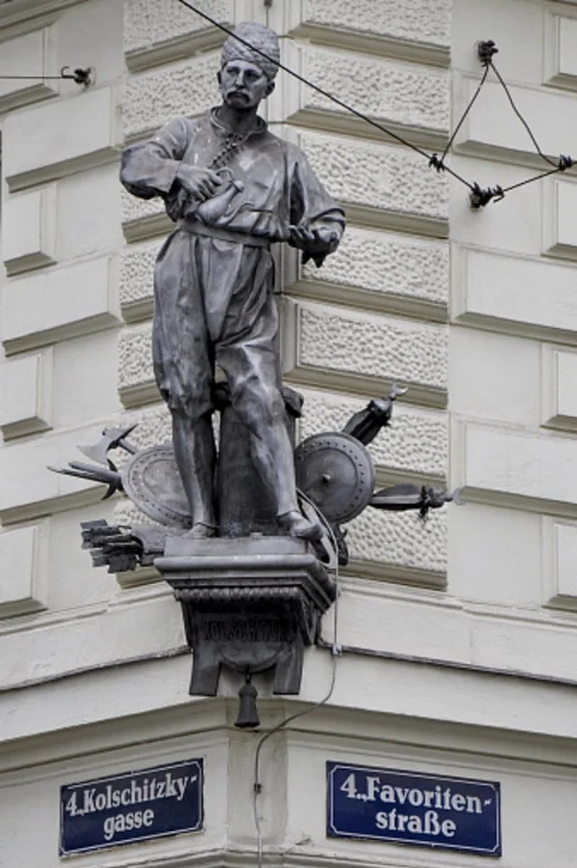 이 중의 한 명이 폴란드인 쿨지츠키였는데 시내 레오폴드슈타트에 커피하우스인 ‘블루보틀 하우스(Hof zur Blauen Flasche)’를 오픈한 것이다. 사실 그는 비인 시민의 영웅이었다. 쿨지츠키는 오랜 기간 유럽의 여러 곳에서 거주하며 외교관 및 무역 업무를 했다. 해외 경험을 통해 그는 모국어인 폴란드어는 물론 튀르키예어, 독일어와 루마니아어를 비롯한 다양한 외국어를 구사할 수 있었다. 쿨지츠키의 이러한 능력으로 그는 포위 막바지에 오스만 군 복장을 하고 적진을 헤치며 나가서 구원군인 로렌 공국의 군대와 연결이 되었고 상황을 확인한 후 다시 비인으로 몰래 들어오는 엄청난 모험을 완수했다. 쿨지츠키가 가져온 구원군에 대한 정보를 바탕으로 수비대는 끝까지 버틸 것을 결정했고 마침내 적을 물리쳤던 것이다! 그의 영웅적인 공적을 인정한 레오폴드 1세와 시 위원회는 금전적 보상과 함께 건물 하나와 오스만 군의 커피를 전리품으로 주었다. 이렇게 해서 유럽에 본격적인 커피 문화가 시작되었고 이후 선풍적인 인기를 끌게 된다. 사실 비인에 최초의 커피하우스를 연 것은 아르메니아인이었던 요하네스 디오다토(Johannes Diodato)였다. 커피하우스와 관련된 쿨지츠키의 이야기는 그의 영웅적 행적에 흥미를 더하기 위해 후대에 일부 창작된 것이다. 비록 그가 최초는 아닐지라도 쿨지츠키는 분명 영웅이었고 초기 비인에 커피하우스를 열며 커피의 전파에 기여한 인물이라는 것은 부인할 수 없는 사실이다. 현재 비인의 4 구인 비덴(Wieden)에 그의 이름을 딴 도로(Kulczycki Gasse)와 석상이 건물 벽에 불어 있다.