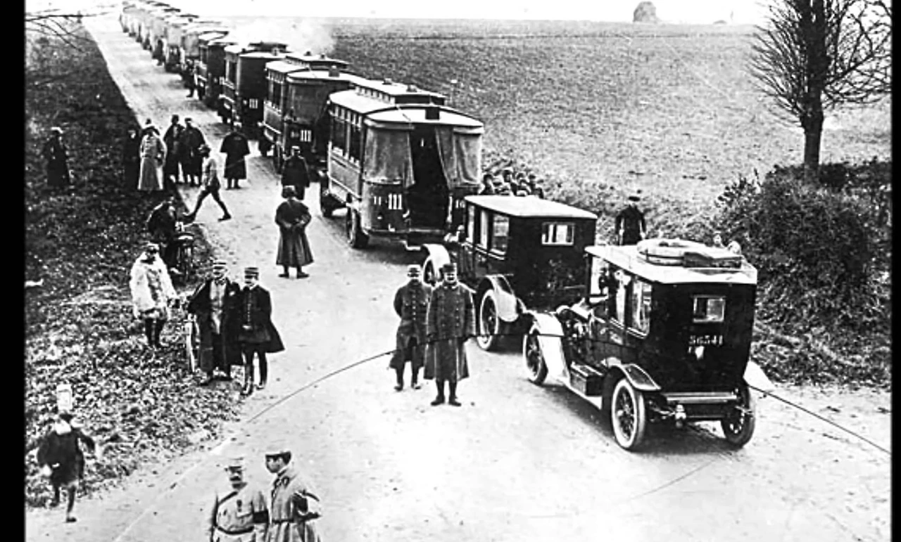 1914년 9월 6일 늦은 오후 파리 중심에 위치한 기념박물관 ‘앵발리드 (Les Invalides)’에는 삼삼오오 자동차들이 모여들기 시작했다. 하나, 둘 모여들기 시작한 자동차들은 순식 간에 수백대로 증가 했는데 이 차들에게는 하나의 특징이 있었다. 모든 차량들이 택시였고 그 대부분은 르노의 ‘AG 타입’ 모델이었다. 저녁 10시 경이 되자 350대로 구성된 첫 번째 그룹의 택시들이25km의 저속으로 이동하기 시작했다. 이들은 파리의 어둠 속에 전방 라이트를 끈 체 앞 차의 후방 라이트에만 의지해서 천천히 주행하고 있었다. 한 시간 후에는 또 다른 250대의 택시들이 이동하기 시작했다. 운전자들 중 누구도 소리를 내지 않았고 모두 침묵 속에 묵묵히 나아가고 있었다. 이들 중 누구도 이 날 자신들의 행동이 프랑스 국민들에게 깊이 각인되며 하나의 전설로 남으리라고는 생각하지 못했을 것이다. 훗날 ‘마른의 택시’라고 불리게 된 프랑스 역사의 한 장면은 이렇게 시작되었다.