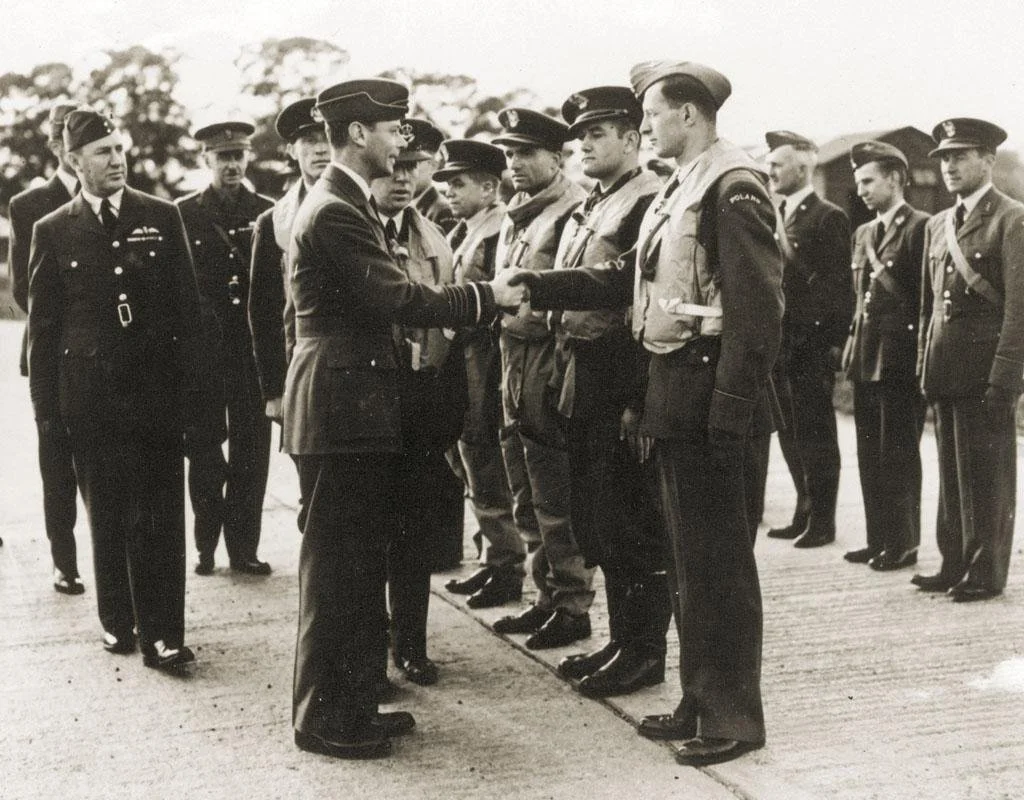폴란드 비행대를 방문하여 격려하고 있는 영국 국왕 조지 6세