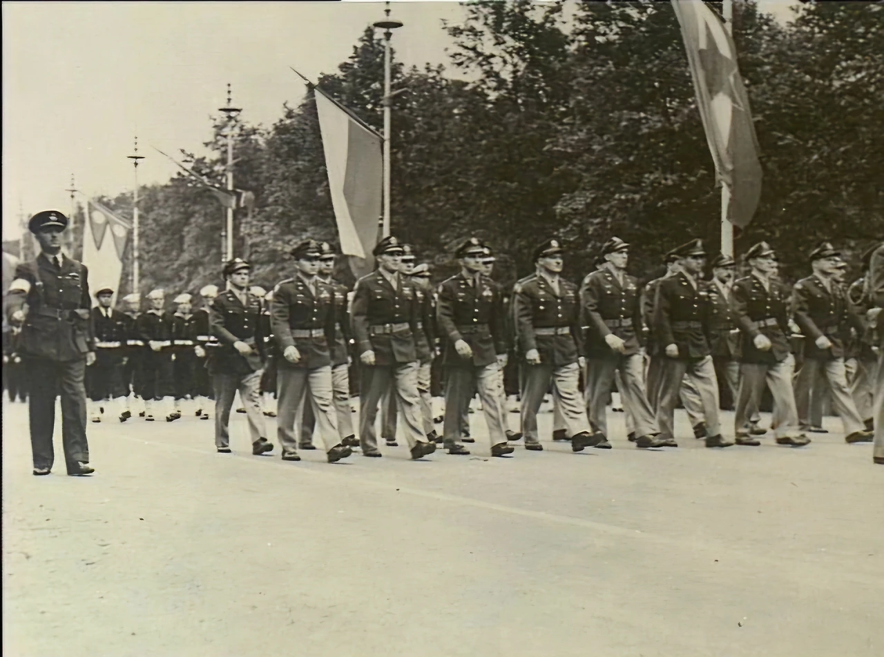 1946년 6월 8일 런던에서 열린 ‘승전 1주년 기념행진’에서 행진 중인 미군: 폴란드군은 초대되지 않았다