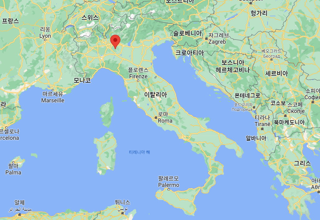 자세히 보면 밀라노의 동쪽으로 약 1시간 거리에 위치한 도시다.