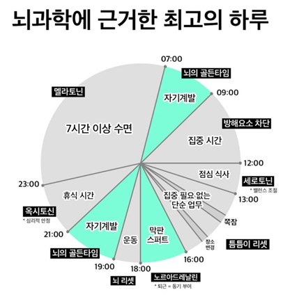 -새벽 1시간- 뉴스, 책 / 오전에 회사 가자마자 2시간 최고 집중 / 오후에 미팅 & 인형알 눈 붙이는 일 / 퇴근 2시간 전 다시 막판 스퍼트 / 운동해서 하루 흐름 끊고, 다시 1시간 집중 - 경제, 책 / 그리고 멍때리다 자기.