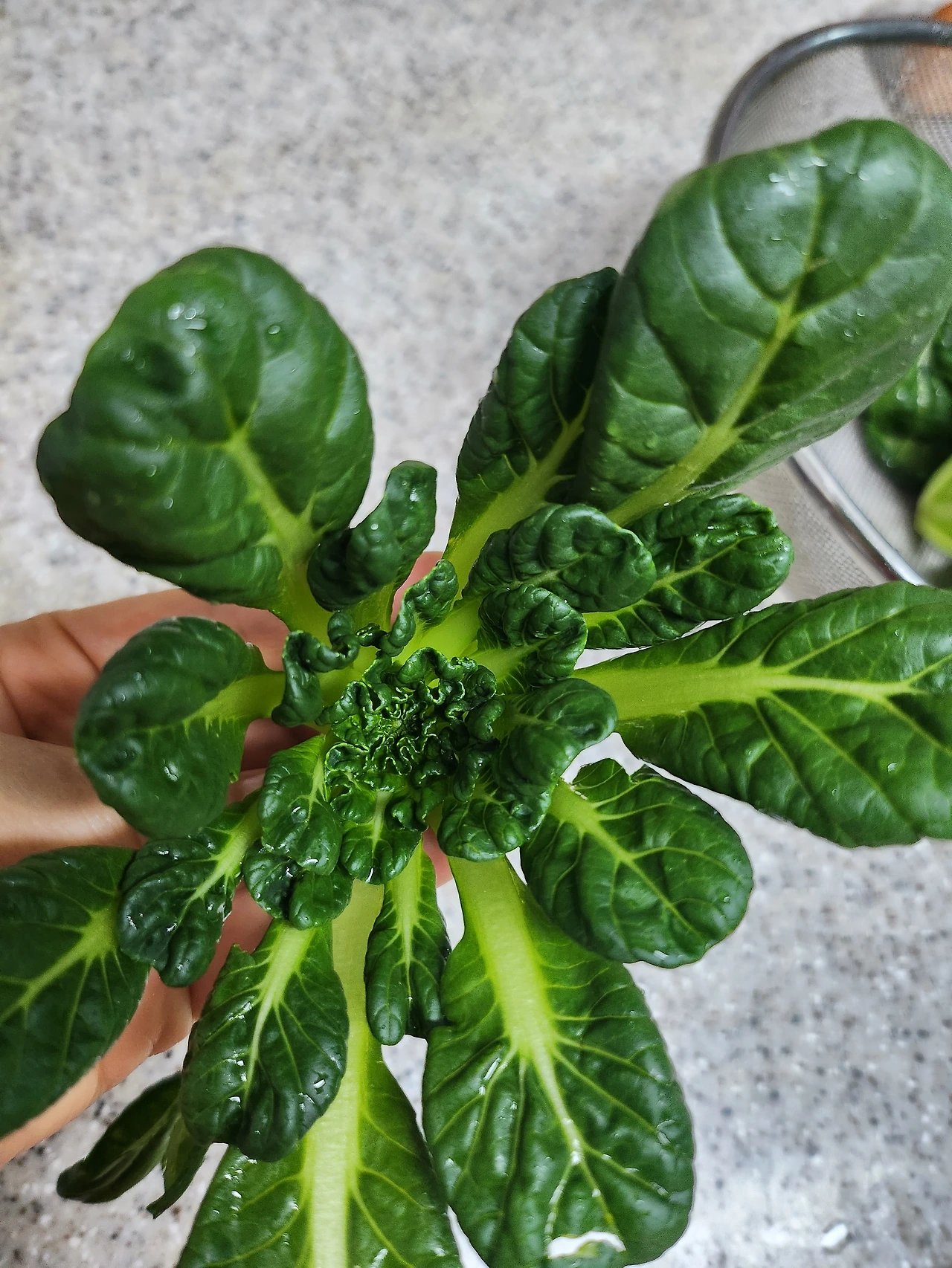 그 주에 마트에서 비타민채를 찾았다. 생각보다 마트에는 많은 야채들이 있었다. 평소에 알던 야채들만 구입하다 보니 몰랐던 것일 뿐 야채종류는 많았다. 먹고 싶었던 비타민채를 장바구니에 담고 집에서 다듬었다. 작은 시금치같이 생기다 보니 다듬기도 편했다.