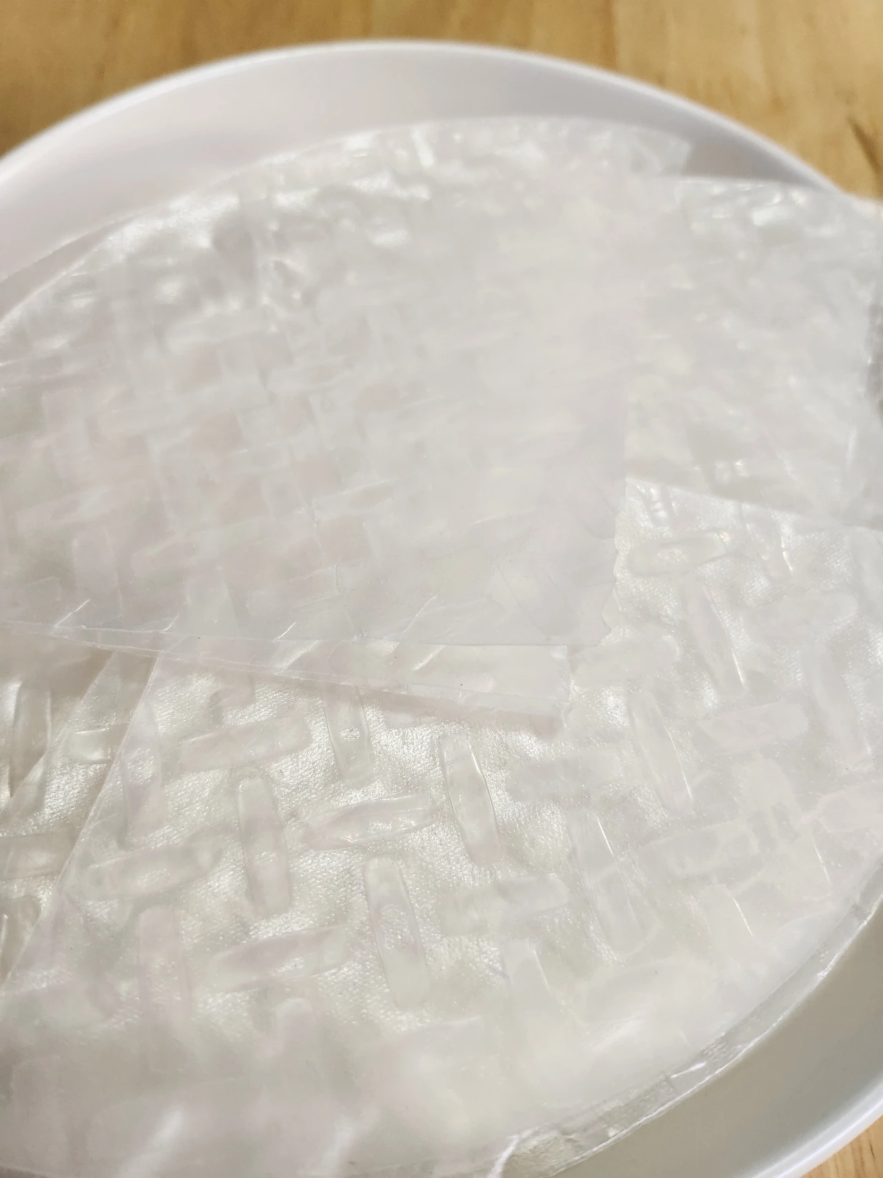 새로 주문한 라이스페이퍼도 두꺼웠다. 잘 못 구입한 것이다. 기존에 있던 라이스페이퍼보다 조금 얇을 뿐 씹어지지 않던 식감은 같았다. 어쩔 수 없이 뜨거운 물을 준비했다.