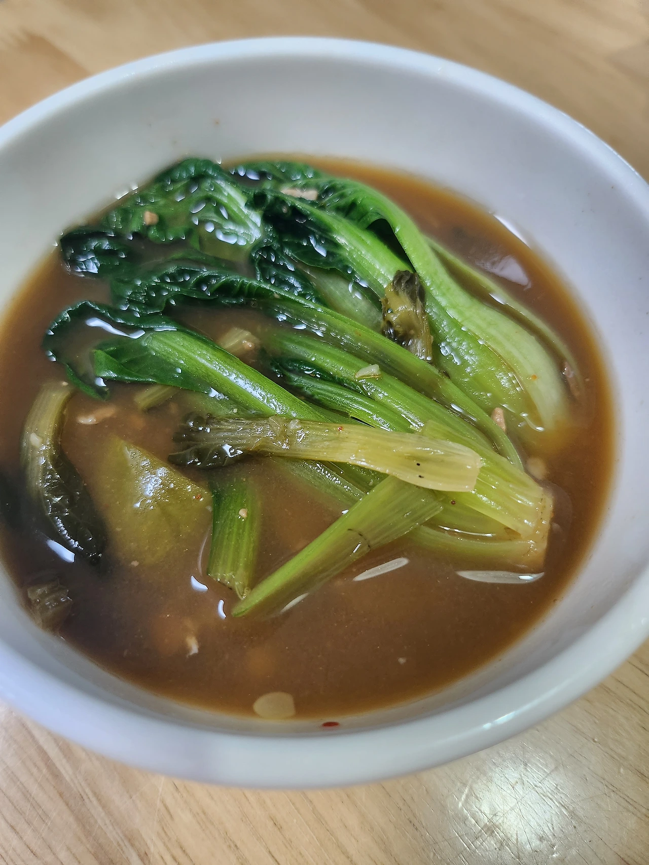 생긴 모양과 가진 영양에 비해 단독으로 먹기엔 아쉬웠던 비타민채. 샐러드로 먹으려면 다른 야채들과 소스가 필요하다. 가장 맛있었던 것은 된장국에 시금치 대신 넣어 거였다. 차가운 샐러드용보다 따뜻한 국물과 먹으니 맛있었다. 뜨거운 국물에 생비타민채를 넣어도 좋았다.