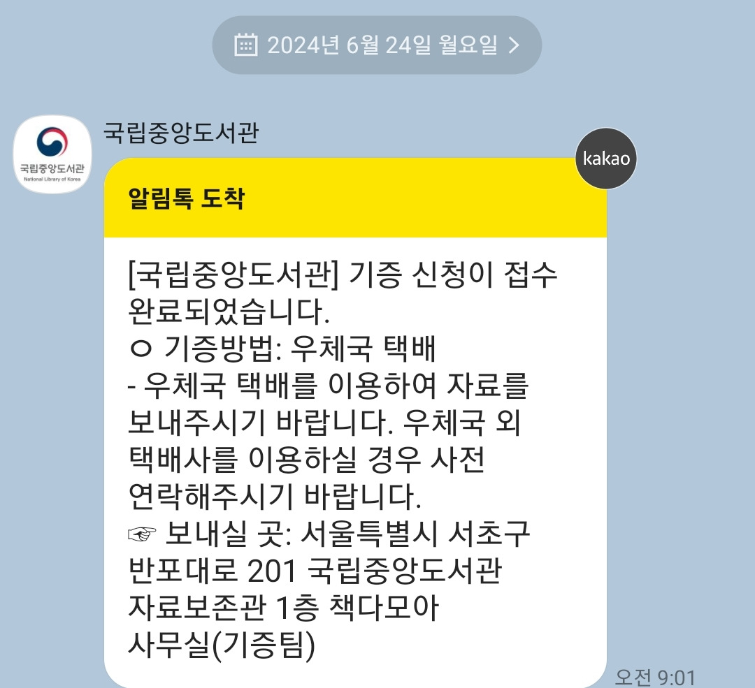 국립중앙도서관은 1945년에 개관한 우리나라 대표 도서관이다. 국가대표도서관인 만큼 많은 도서를 보유하고 있는 곳이다. 이곳에 책을 기증하면 받아 준다니 안심이 되면서 해 보고 싶어졌다.