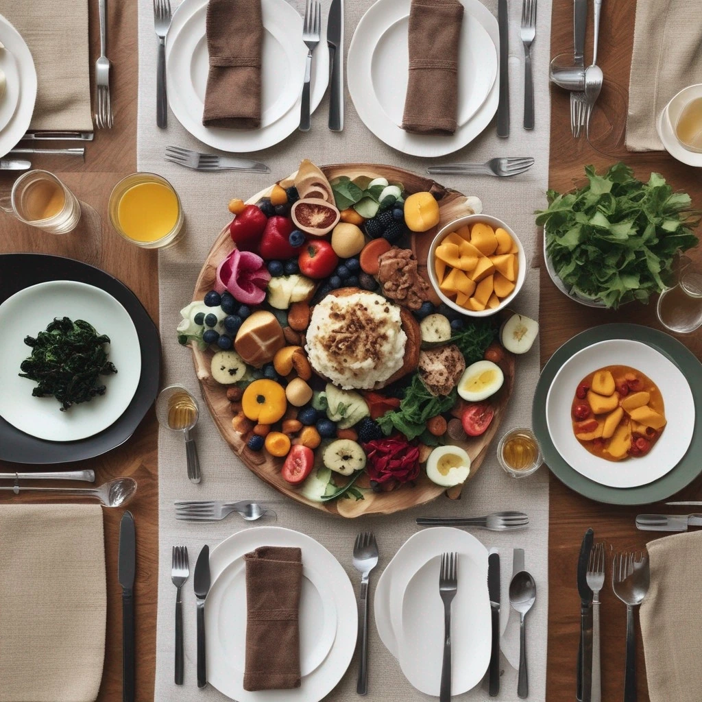 "아따씨야. 접시가 너무 많은 거 아닙니까? 스테이크 놓을 자리가 없어요."