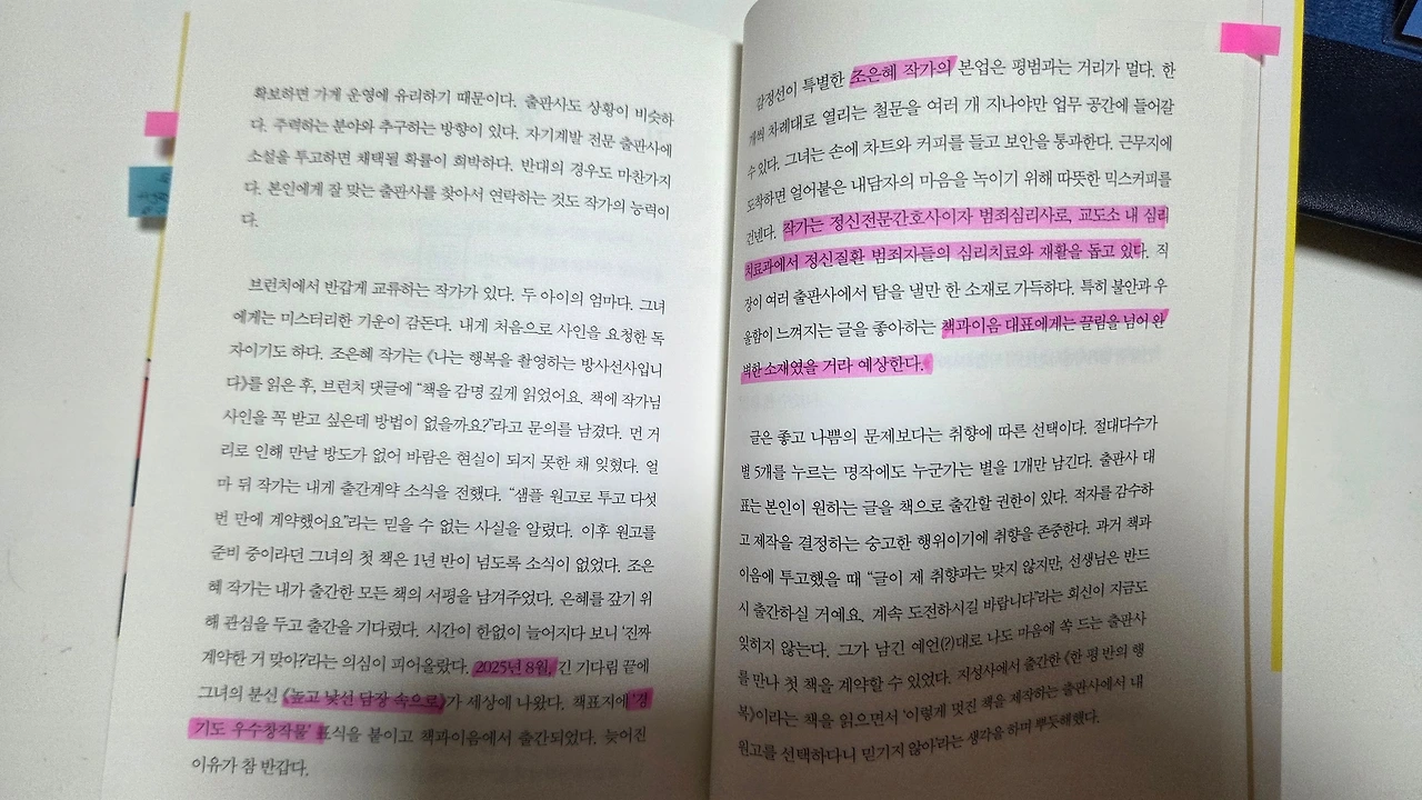 좋아하는 책 한 권 펼쳐볼 여유조차 없는 요즘, 진작에 사두고 쌓아만 둔 책들의 탑이 점점 높아지고 있었다. 그럼에도 그의 책만큼은 미루어 둘 수 없었다. 내 이름이, 내가 쓴 책이, 그리고 우리의 인연이 그 안에 기록되어 있다는 것을 알고 있었기 때문이다. 출간일을 미리 일정표에 적어둘 만큼 기다리고 있었다.