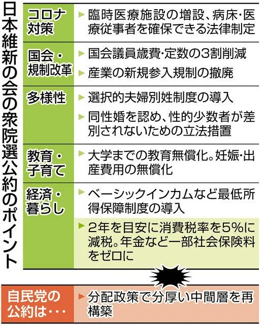 2021년 중의원 선거 당시 유신회의 공약 (출처: 도쿄 신문 )
