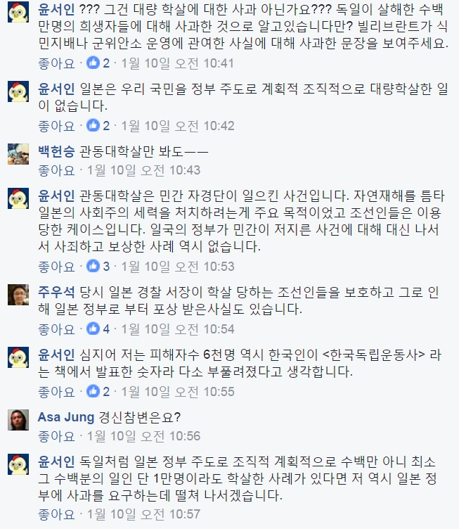 그런데 윤서인은 그저 일본을 옹호하기 위해 과거 일을 다 잊어버리자 이러고 있다. 그것도 역사적으로 있었던 사실까지 왜곡해가며. 아, 그저...