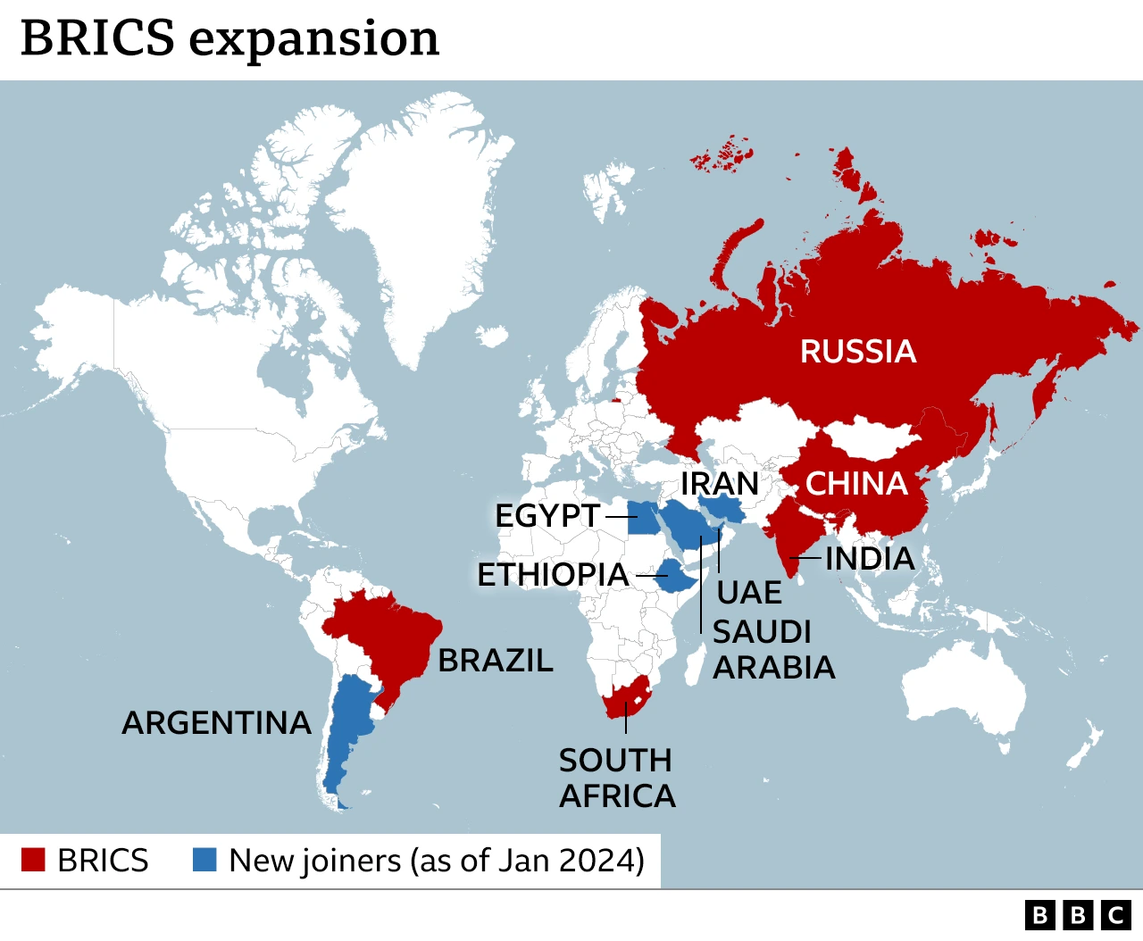 BRICS welcomes new members in push to reshuffle world order The BRICS bloc of developing nations agreed on Thursday to admit Saudi Arabia, Iran, Ethiopia, Egypt, Argentina and the United Arab Emirates in a move aimed at accelerating its push to reshuffle a world order it sees as outdated.