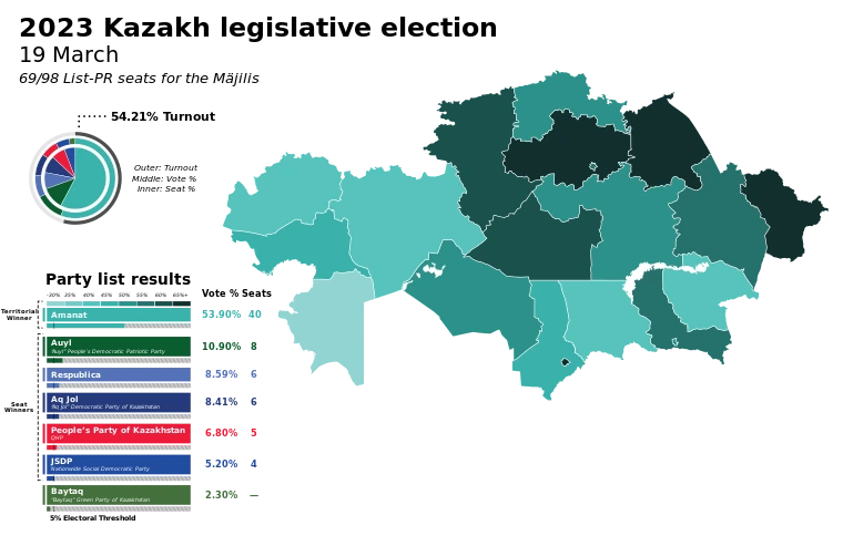 이 헌법 개정으로 상원인 세나트는 4년에서 6년으로, 하원인 마질리스는 4년에서 5년으로 늘었고 정당의 당선득표율 하한선이 10%에서 7%로 하향조정 되면서 신인의 진출은 더욱 어려워 졌다. 비례대표 또한 10명이나 증가했으며 대통령 임기는 5년에서 7년으로 연장, 대통령 출마 가능 연령 상향선인 65세는 철폐되었다. 참고로 상향선 철폐는 나자르바예프 본인이 1940년생이기에 했던 것이다. 2002년에는 정당법을 개정해 정당 창당 요건을 5만명의 당원으로 규정했고 정체성을 기반으로 한 정당 창당을 금지시켰다. 한편 야당은 이 시기 동안 민주적 선택으로 모여서 나자르바예프 정권에 저항하기 시작했고 이에 야당을 분열시키는 공작을 하는 술수도 자행되었다. 아예 야당 인사들의 의문사 사건들도 벌어졌을 정도.
