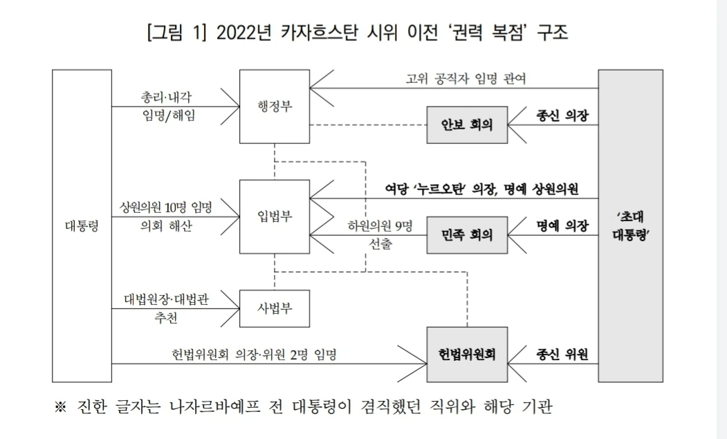 김소연 외, <2022년 카자흐스탄 정치변동의 내용과 의미 :엘리트 집단 교체와 헌법개정을 통한권력 구조 개편을 중심으로>, 한양대학교 아태지역연구센터, 중소연구 47(1), 2023
