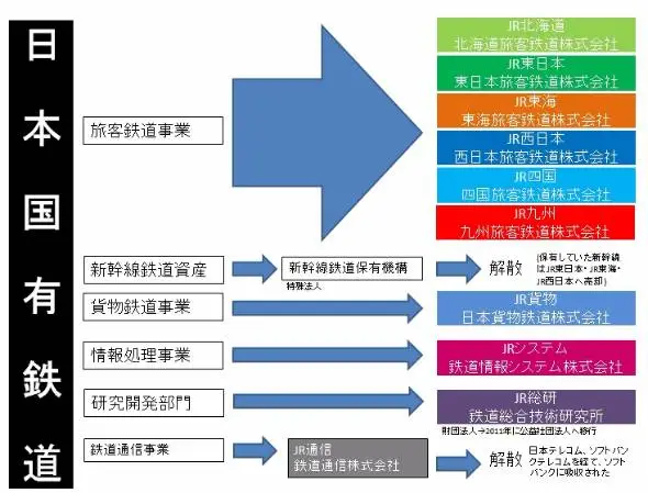 국철 분할 민영화총리가 된 나카소네가 행정개혁의 일환으로 먼저 한 것은 전전공사 개혁이었다. 적자를 내고 있던 국철과는 달리 흑자인 공기업 전전공사의 개혁은 상대적으로 용이했다. 1982년 10월 전전공사 신도 총재와 전기통신노조 위원장인 야마기시의 회담에서 노조 측이 양보함에 따라 민영화는 급물살을 탔고 중간에 절충하여 15년 간에 걸쳐 9만명에 대한 대폭 인사 감축 계획 시안을 토대로 민영화가 추진되었다. 그러나 국철 민영화는 조금 난감했는게 1964년 300억 엔이던 국철 적자가 1981년에 누적 적자 1조 엔을 넘긴 것이었다. 대부분의 장기 채무가 차입급 변제나 이자 지불에 사용될 정도였으니 심각한 상황이었다. 더욱 곤란한 것은 국철노조가 사회당의 최대 지지기반인 총평 소속이었다는 것이며 그렇다고 개혁을 안 하기엔 41만 3,000명의 직원이 근무하는데도 수지 개선이 없는 상태였다.