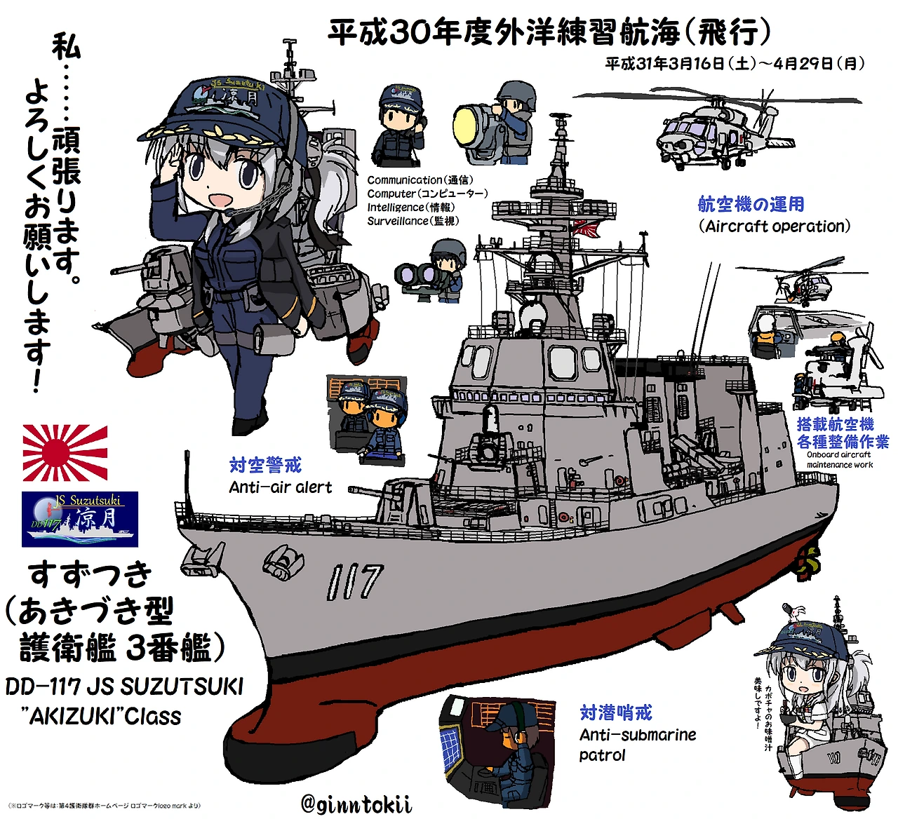 아키즈키 호위함 DD-117 스즈쓰키(すずつき)또 대외적으로 나카소네의 국제국가 노선은 신국제주의 노선이기도 하였다. 참고로 나카소네의 노선은 요시다 노선에 대한 한정적인 수정이었는데 요시다는 안보 및 방위 문제는 미국에 맡긴 채 경제 대국 건설에 집중했지만 나카소네는 경제 대국 일본의 목표가 달성되었다는 전제 하에 국제 무대에서 외교적 발언력을 높이는 방향으로 간 것이다. 즉 정치, 군사적 목소리를 높이는 것에서 나카소네의 시도는 경제중심주의적인 요시다와는 궤를 달리하였다. 그러나 한편으로는 나카소네의 국제국가 노선은 하토야마 이치로나 기시 노부스케의 복고적, 전통주의적 보수주의와도 달랐다. 전전 체제로의 복귀나 군사 대국 일본의 복원이 아닌 자유주의 진영에서 미국의 확고한 지지자가 되려는 시도였다.
