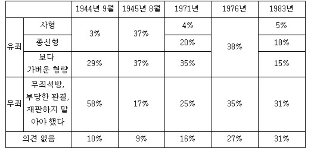 그에 비해 일제는 우리를 36년간이나 지배했지만 나치 독일은 1944년까지 단 4년만 프랑스를 점령했을 뿐이었다. 점령기간이 길수록 협력자가 증가할 것이고 협력의 조건 자체 및 동화의 정도, 체념과 순응의 정도 또한 달라질 수밖에 없었다. 무엇보다도 1944~1945년에 두 나라의 해방된 방식과 양상은 완전히 달랐다. 우리의 해방은 1945년 8월 15일 일본의 무조건 항복으로 갑자기 이루어졌지만 프랑스는 1944년 6월 6일 연합군의 노르망디 상륙작전부터 이듬해 5월 8일 독일의 항복에 이르기까지 여러 달에 걸친 전투의 산물이었다. 여기서 보다 중요한 것은 해방 과정에 프랑스 국내의 레지스탕스와 드골의 자유 프랑스군이 어느 정도 기여했다는 것인데 반대로 우리는 광복군을 비롯한 무장세력이 해방 과정에 전혀 개입하지 못했다. 그러니 프랑스가 해방 후에 대독 협력자 숙청을 벌이기가 우리보다 훨씬 더 조건상 유리했고 우리는 반대로 매우 어려웠다는 셈이다. 거기에 더해 프랑스의 과거사 청산 방식은 마냥 깔끔하지도 않았다.