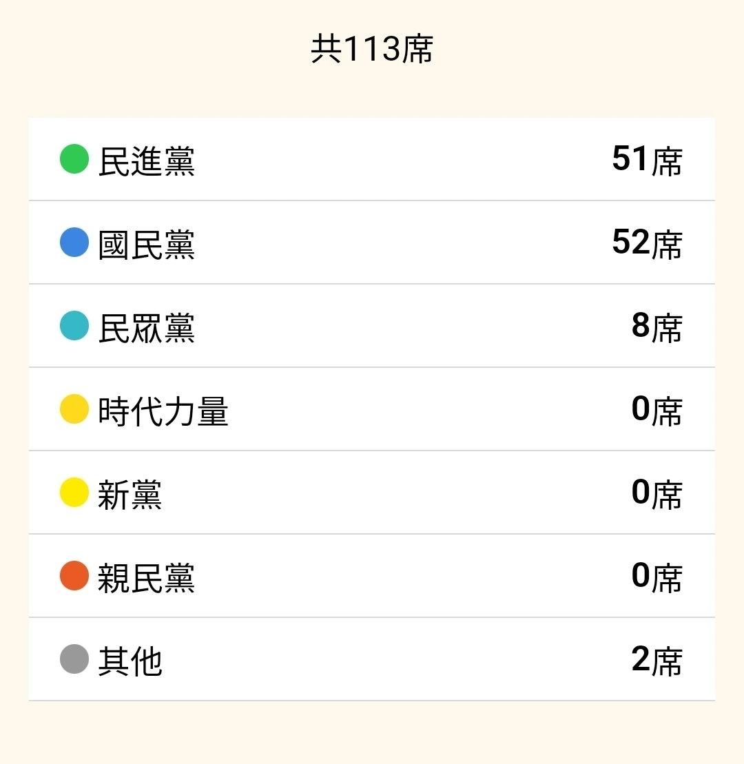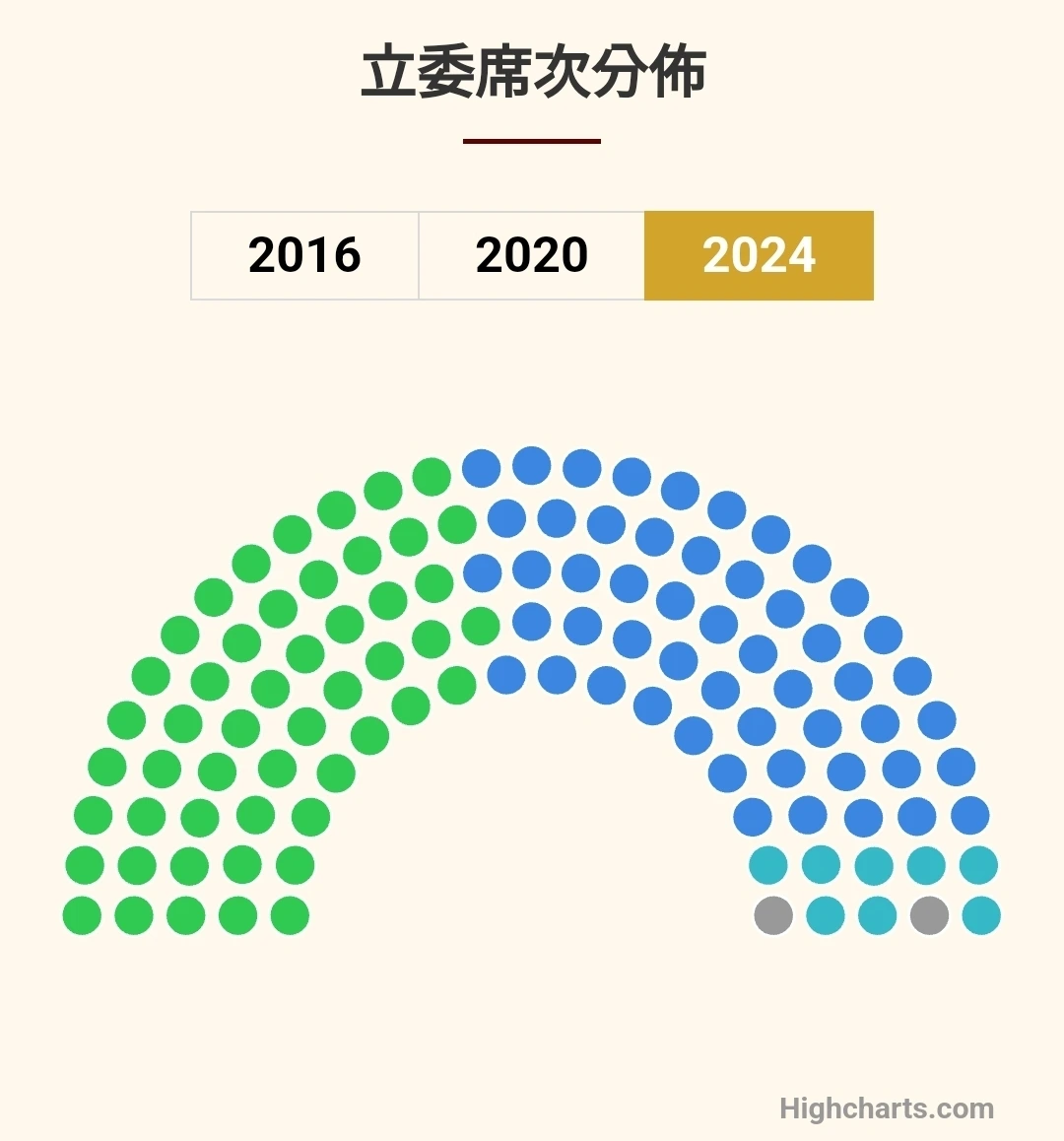 이러한 라이칭더의 임기 시작과 동시에 레임덕이 나타날 것이라는 주장은 단순히 친국민당 관점에서의 시각으로만 볼 수 없다. 그 이유는 이번 총통 선거랑 같이 치러진 입법원 선거만 봐도 답이 나오기 때문이다. 선거 전 집권 여당인 민진당은 62석이었으나 선거 후에는 51석으로 줄어들면서 과반 확보에 실패했다. 반면 야권인 국민당은 52석, 민중당은 8석, 친국민당 성향 무소속이 2석을 차지하며 총통 선거에서 라이칭더가 당선된 것과는 달리 입법원은 완전 여소야대 정국으로 변해버렸다. 최악의 시나리오를 가정하자면, 라이칭더는 여소야대 정국이라는 시작부터 레임덕이라는 디버프를 가지고 출발할 가능성도 배제할 수 없으며 주류 민심 또한 라이칭더라는 새 정권에 대한 지지를 대표할 수 없는 것은 너무나 당연한 사실이다. 사실 이는 차이잉원 정권의 민생경제 문제 해결 실패와 강경 반중 정책으로 인한 긴장 고조가 그만큼 민진당의 지방선거 참패 이후로 민진당에 대한 반감을 키워서 견제 심리로 작용한 면도 있다.