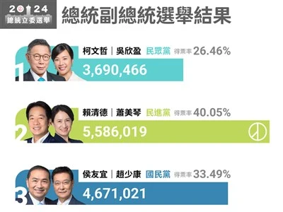 얼마 전 대만 총통선거에서 민진당 라이칭더 후보가 당선되었다. 최종 득표 결과, 민진당의 라이칭더-샤오메이칭 조가 40.05%, 국민당의 허우여우이-자오샤오캉 조가 33.49%, 그리고 민중당의 커원저-우신잉 조가 26.46%를 얻으며 민진당 정권의 연장이 최종적으로 결정되었다. 선거 후반부까지 접전을 달리며 민진당과 국민당, 그리고 민중당까지 3자 구도로 치열한 싸움이 벌어져 결과 예측이 마냥 쉽지만은 않았는데 어쨌든 투표함 개봉 결과는 민진당의 라이칭더 쪽으로 기울였다. 차이잉원 정권이 민심이 갈 수록 안 좋아졌던 상황에 비하면 민진당으로서는 아무튼 승리를 가까스로 쟁취한 셈이다.