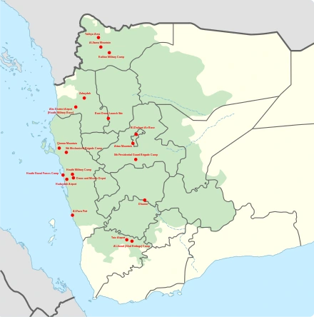 후티 반군은 구 북예멘의 지역 거의 대부분을 점령하고 있다.