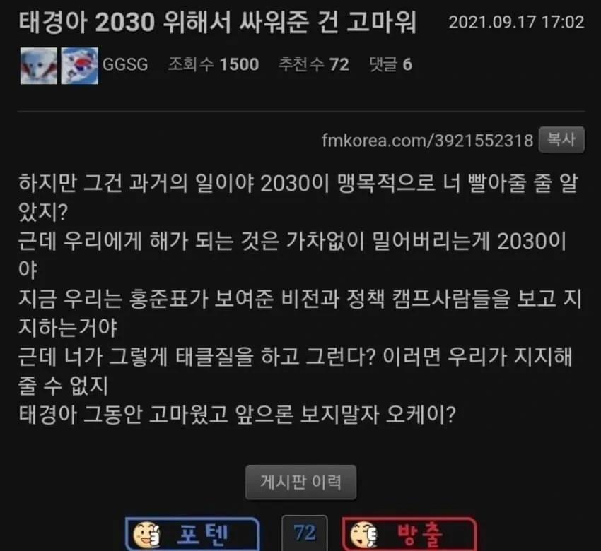 P.S. 이준석한테 염증 느끼는 내가 이준석을 쉴드치고 있고 오히려 강성 지지층이 욕하고 있는 것 보면 상황이 좀 웃기긴 하네.
