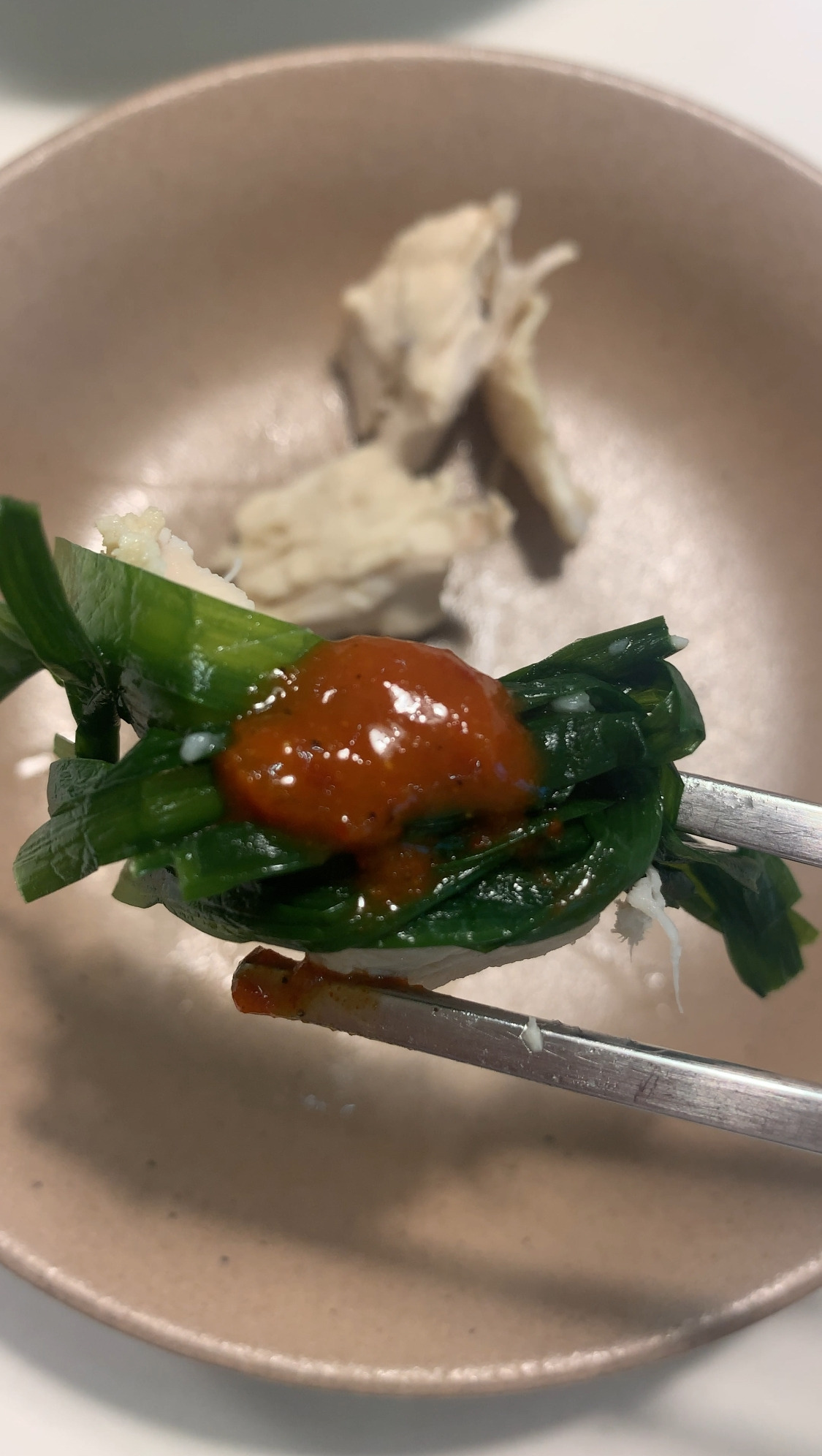 오늘의 주인공은 닭 한 마리와 채소, 그리고 칼칼한 비법소스가 어우러진 보양식.