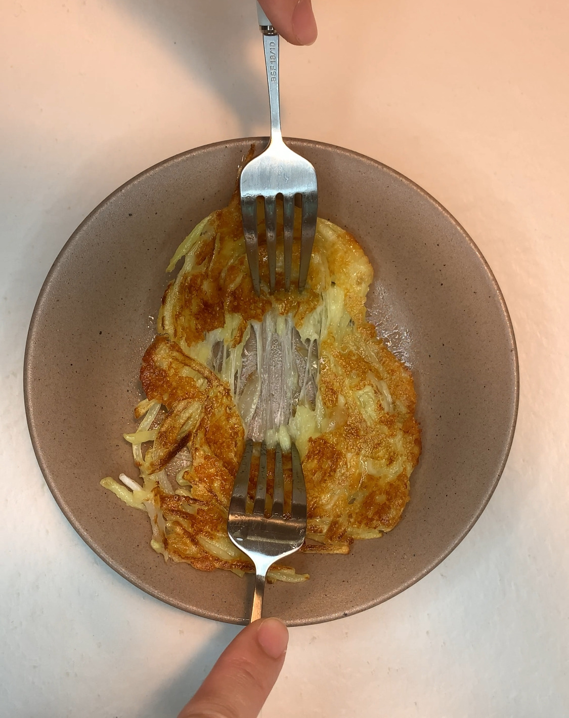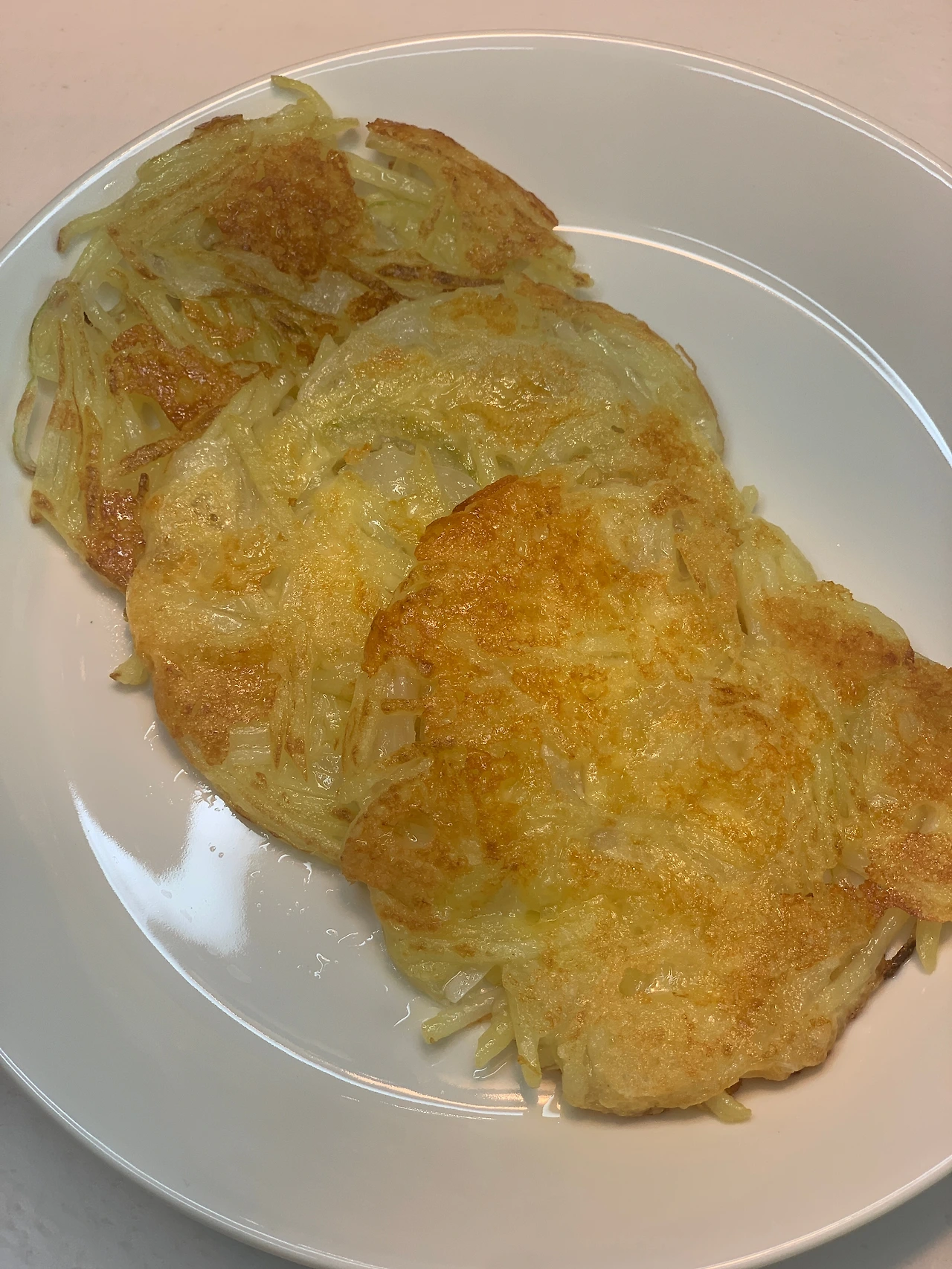 감자를 곱게 채 썰어 찬물에 담가 전분기를 빼주고, 양파 조금, 전분가루, 소금 간간히, 그리고 피자치즈를 듬뿍 넣어 골고루 섞었어요. 팬에 기름을 두르고 노릇하게 구워내면… 겉은 바삭! 속은 쫀득쫀득!