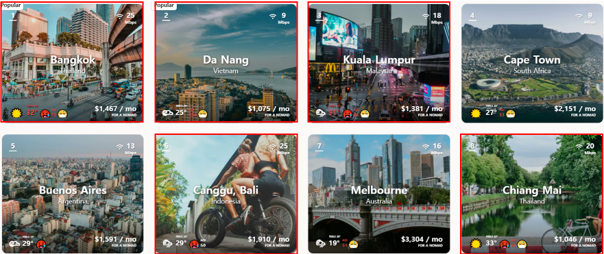 이 사이트를 기준으로 글로벌 디지털노마드들이 선호 도시는 항상 변화하긴 하지만