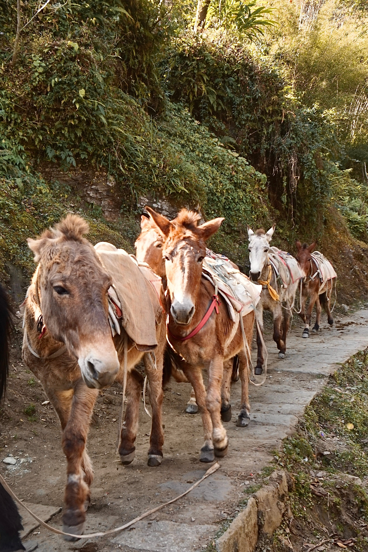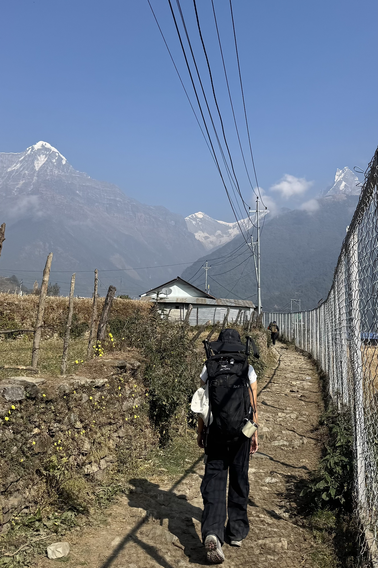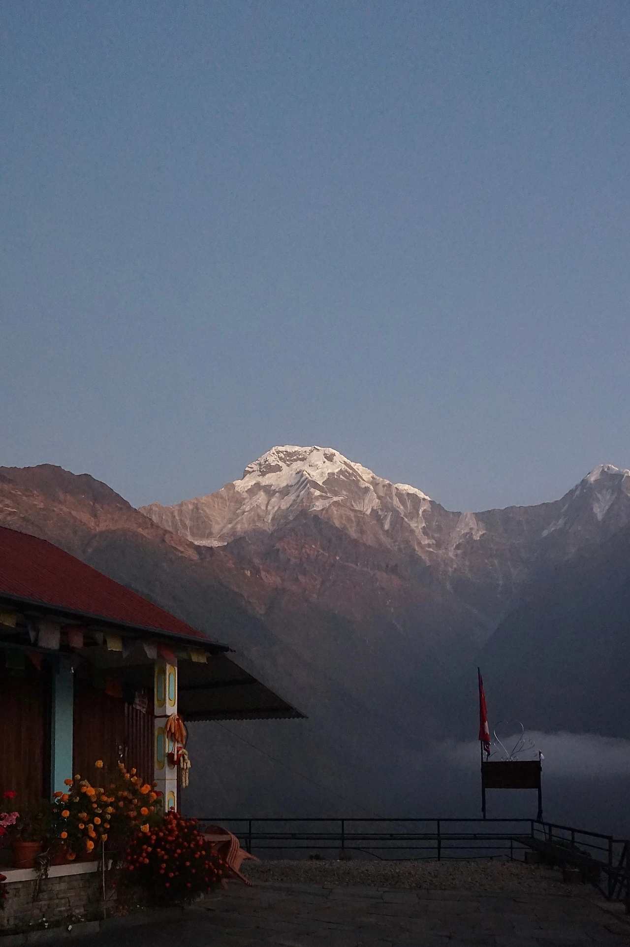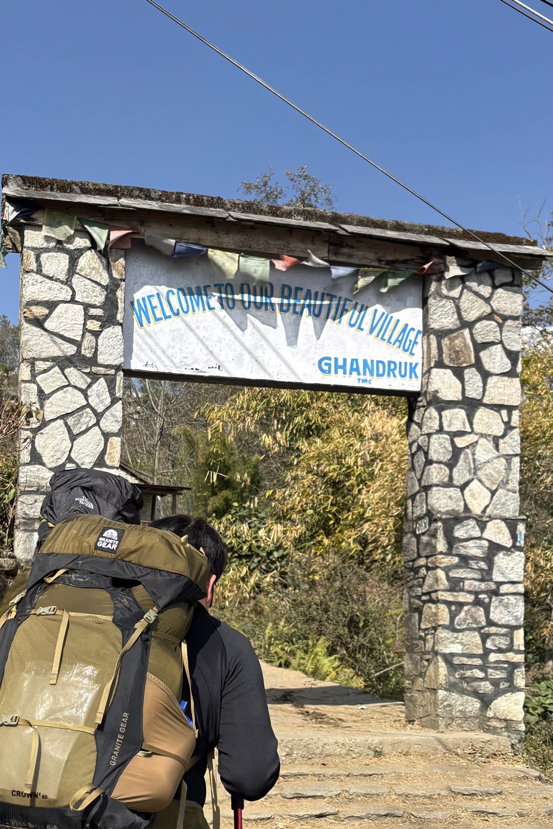 두세 시간 동안 흔들리는 지프에서 흘러나오는 네팔 음악을 들으며 한참 동안 강제 댄스파티를 즐기다 보니 간드룩에 도착했다. 원래 가던 길이 공사 중이라 간드룩을 걸어서 가로질러 또 다른 포인트에서 지프를 갈아타야 했다. 간드룩은 네팔에서 유명한 휴양지라더니 사람이 많았다. 트레킹을 가기 위해 잠시 지나는 여행객들, 놀러 온 네팔 사람들 그리고 물건을 옮기는 망아지들까지 모두 열심히 걸었다. 땅을 보며 걷다가 다시 고개를 들며 마주했던 풍경은 현실성이 없었다. 내 눈앞에 있는 게 히말라야라고? 조용한 마을을 한 아름 감싸고 있는 히말라야는 너무 거대하고 살짝 흐릿하게 보이는 탓에 신기루인 듯했다. 내가 저 산을 오른다니, 더 믿어지지 않았다.