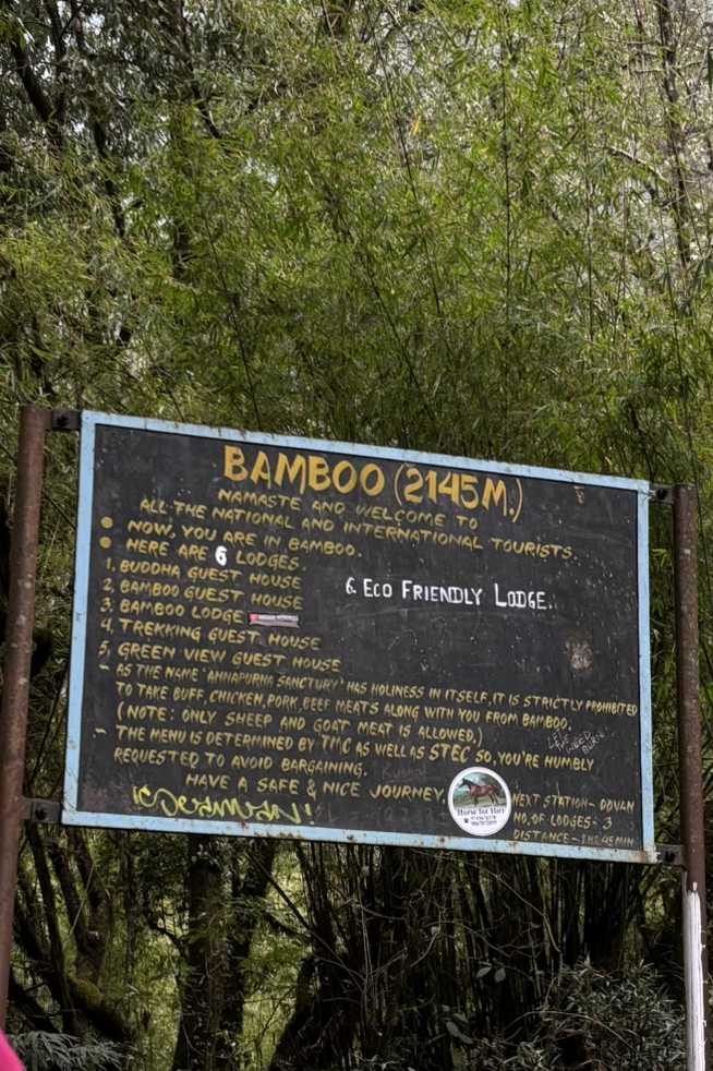 그렇게 걷고 쉬기를 반복하는 게 어느 정도 익숙해지는 트레킹 이틀차였다. 둘째 날 도착지는 해발 2145m에 위치한 밤부(Bamboo). 팻말이 잘못된 건가 어제 묵었던 숙소보다 고도가 낮아서 의아했지만 일단 주어진 몫을 해낸 것에 서로를 다독인다.