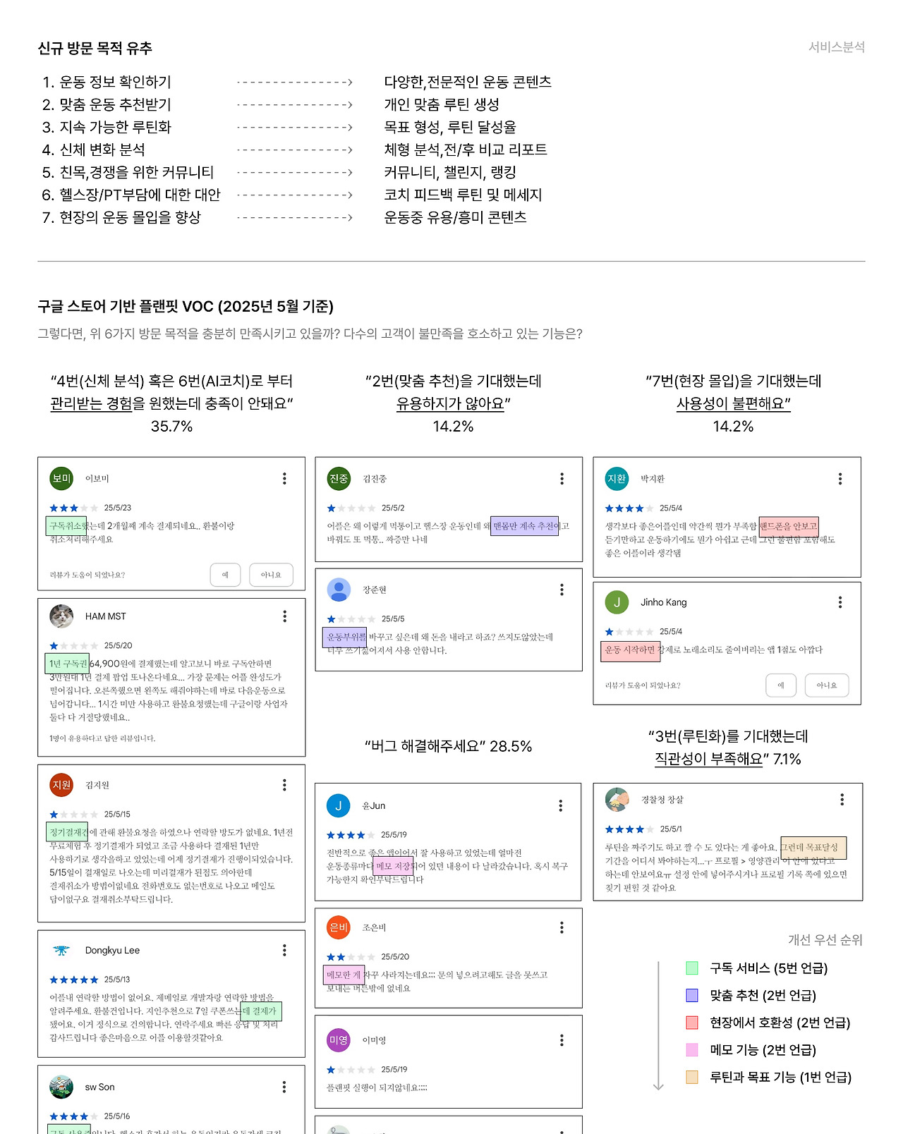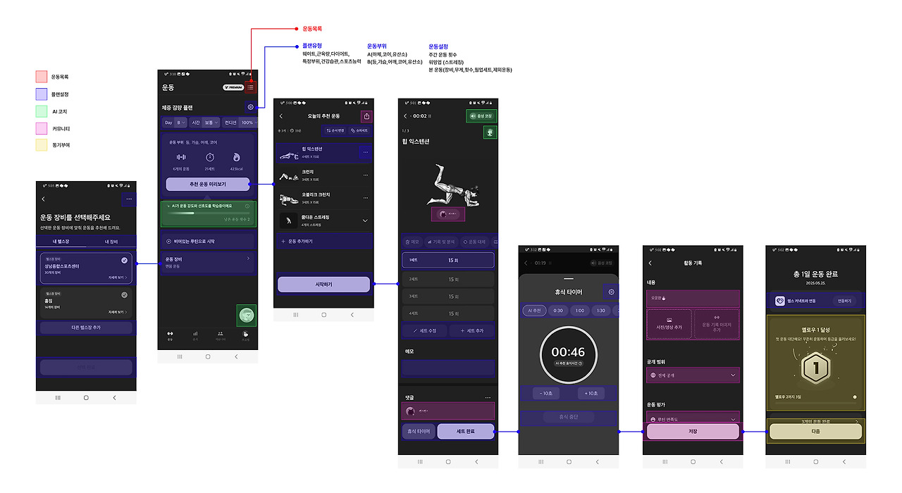 - 실제 운동을 하는 사용자의 경우 운동 부위 보다는 DAY A,B가 더 사용하기 편함. 패키지로 상체,하체 부위들을 선택할 수 있는 구성이 있으면 좋을 것 같다.