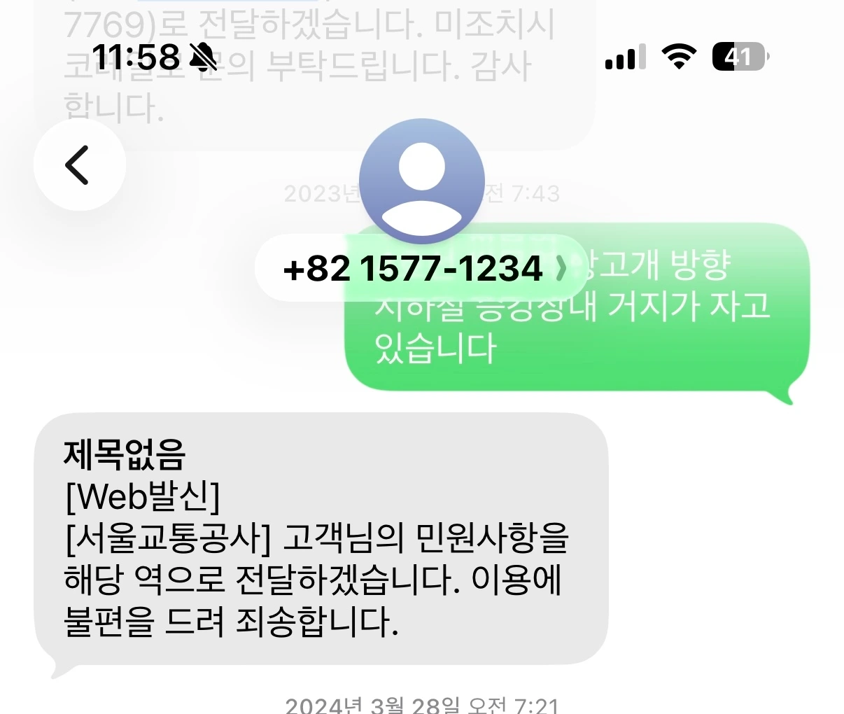타고 있는 지하철 호선과 지나고 있는 역. 해결해 주면 좋겠는 사항 하나만 문자로 남기면 5분 안에 역무원이 피드백 주신다..