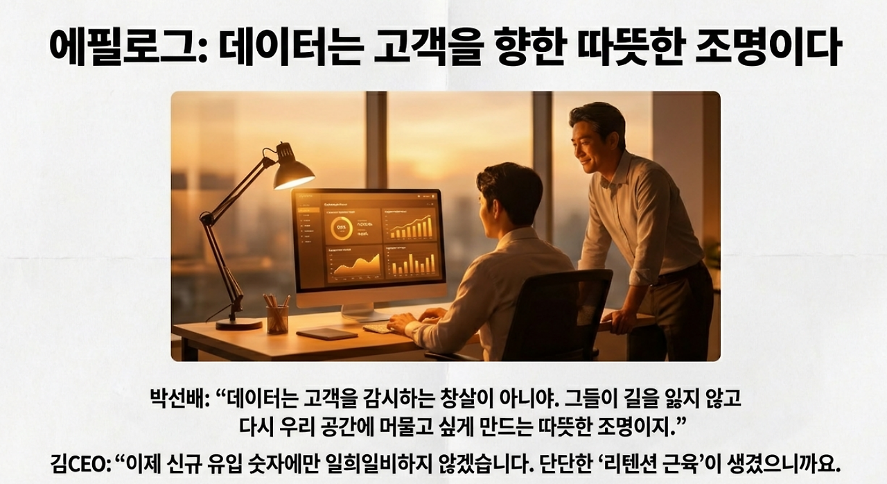 박 선배: "데이터는 고객을 감시하는 창살이 아니야. 그들이 길을 잃지 않고 다시 우리 공간에 머물고 싶게 만드는 따뜻한 조명이지.”