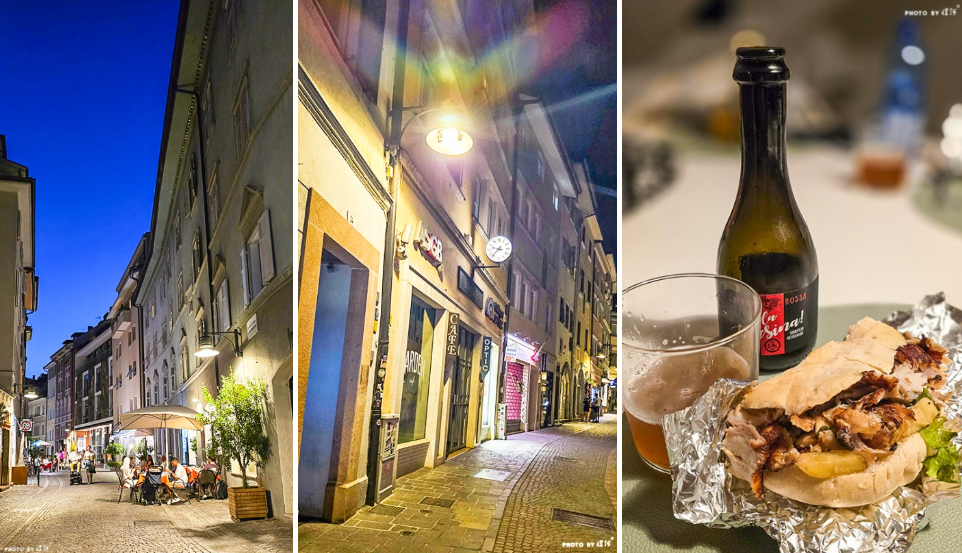 저녁 8시가 다 되어 볼차노에 도착했더니 세상에 정말 마트고 식당이고 불을 밝힌 곳을 찾을 수 없었다. 그나마 눈에 뜨이는 건 막 문 닫기 직전이었던 케밥집과 젤라토. 저녁으로 젤라토를 먹을 수는 없으니 우리는 서둘러 케밥집으로 갔다. 사장님은 다소 피곤해 보였으나 굶주린 우리를 웃으며 반겨주었으며 유쾌하게 주문을 받고 빠르게 케밥을 만들어 주었다. 생수 두 병과 케밥을 포장해서 가는데 어찌나 안심이 되었던지.