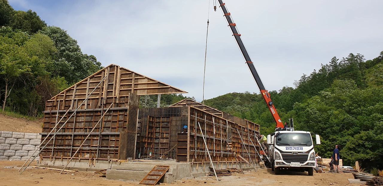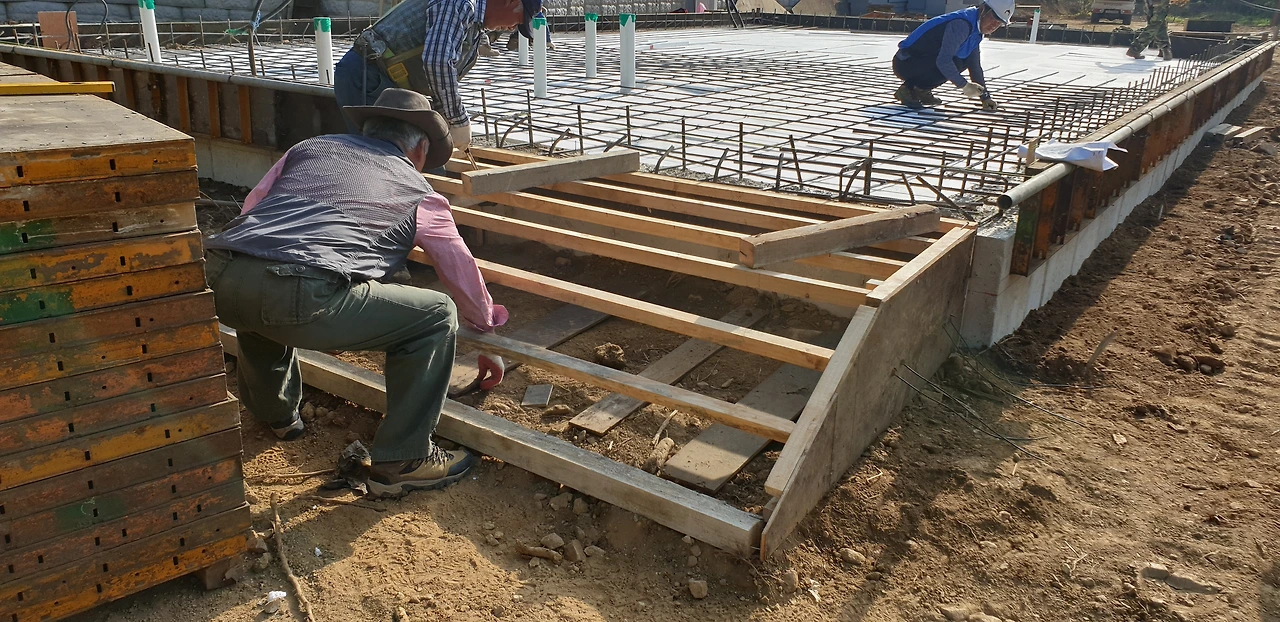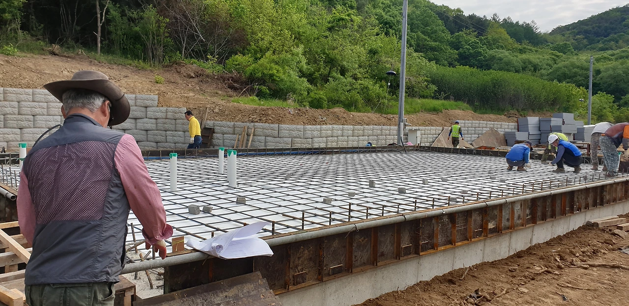 이제 다시 집터에 콘크리트 타설을 해야 합니다.