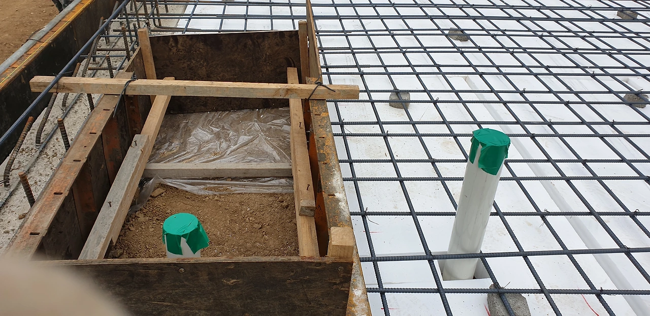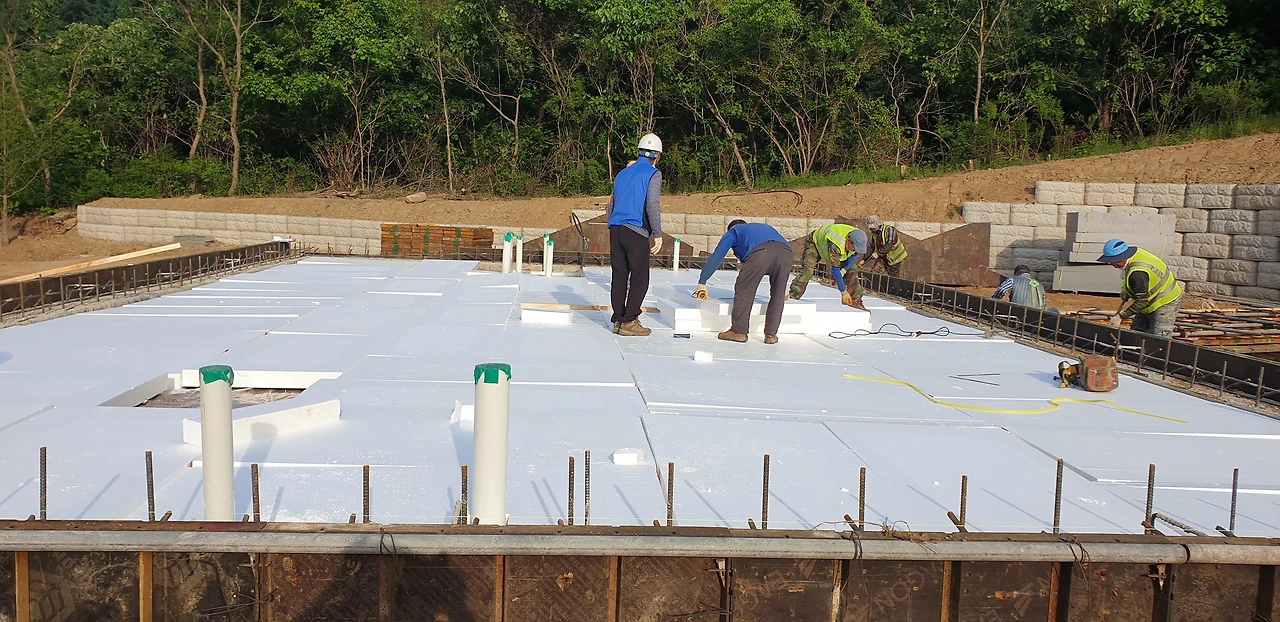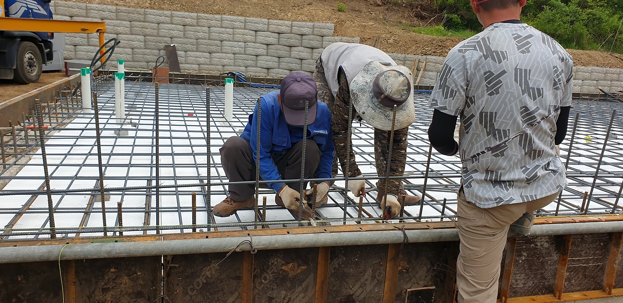 스티로폼을 깔고 다시 철근을 배근합니다.