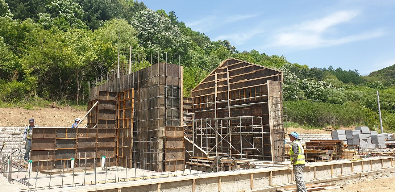 지붕 틀 만들어 지붕 타설 하는 형식을 취하지만