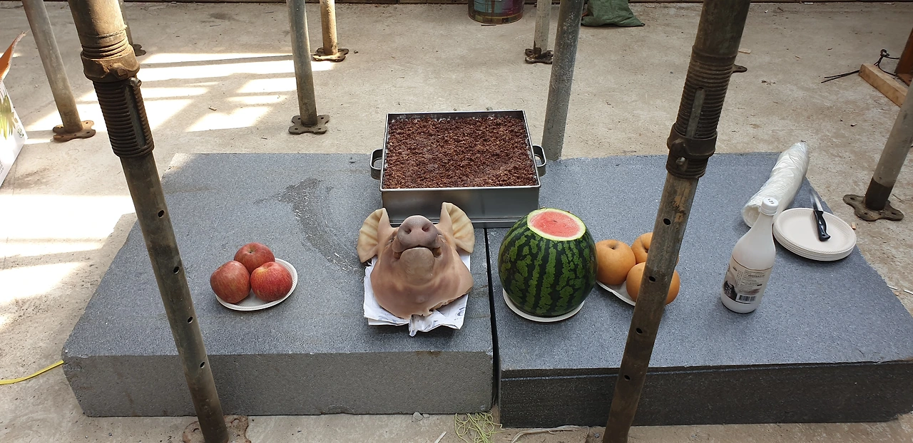 돼지머리 올려지면 당연히 절 해야 하지요.