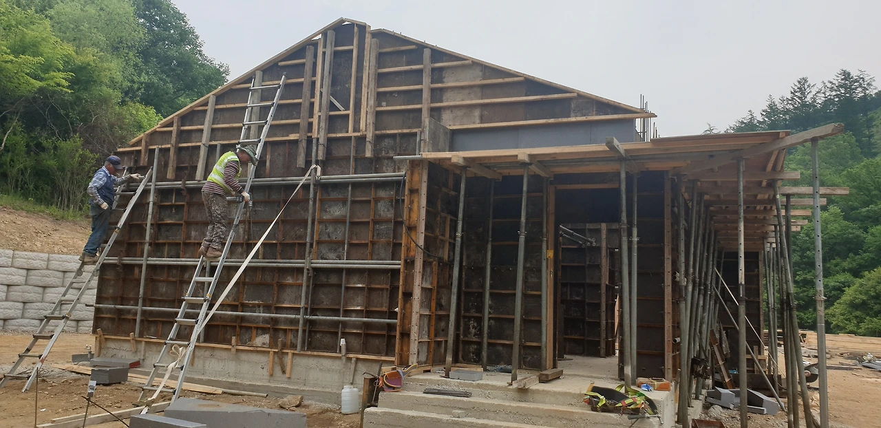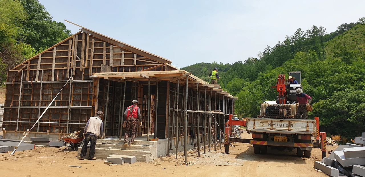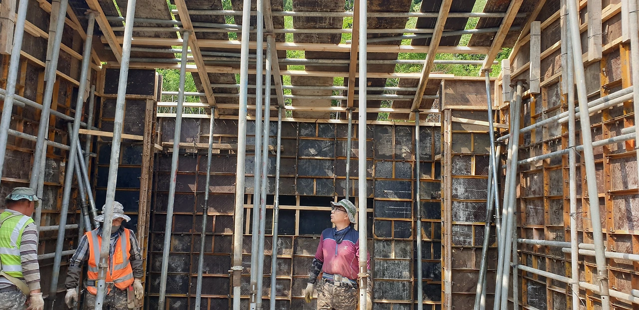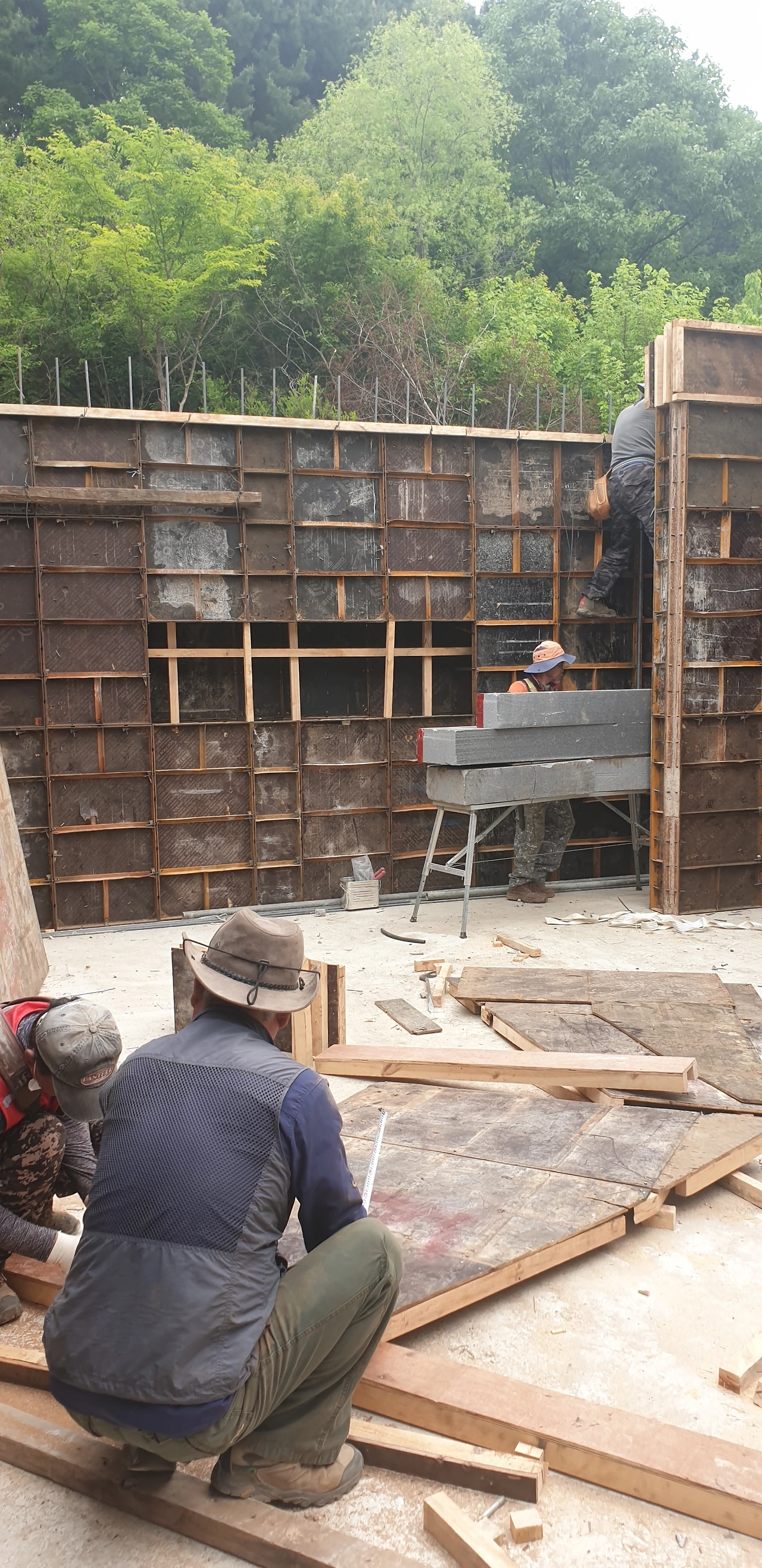 콘크리트 벽 속에 작업해야 하는 공정이 마무리되자