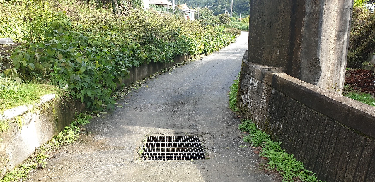 바로 진입로에 떡하니 버티고 있는 농수로!