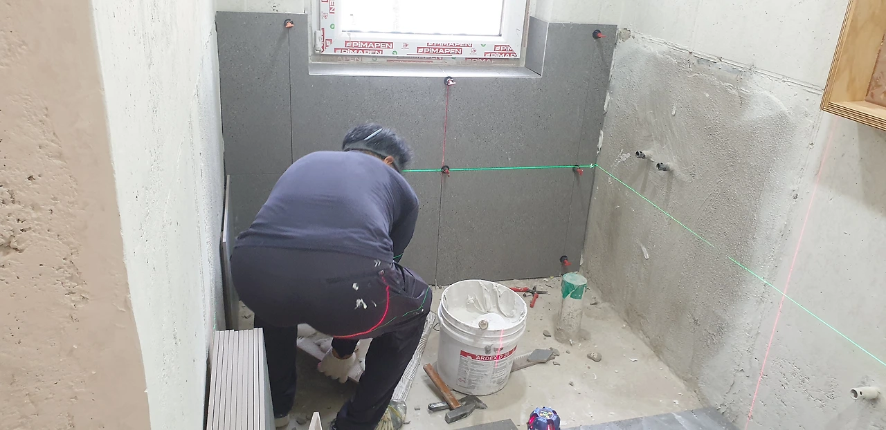 온 장 타일만 붙이는 데 이틀이 걸렸습니다.