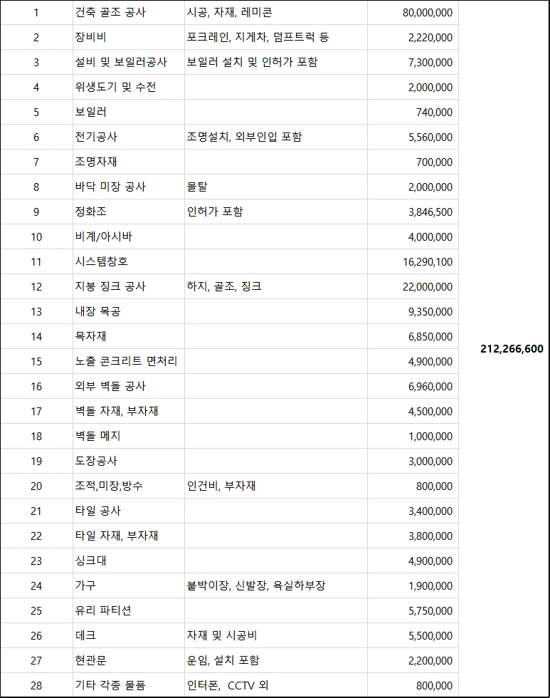 대지 구입비와 토목공사비는 넣지 않았습니다.