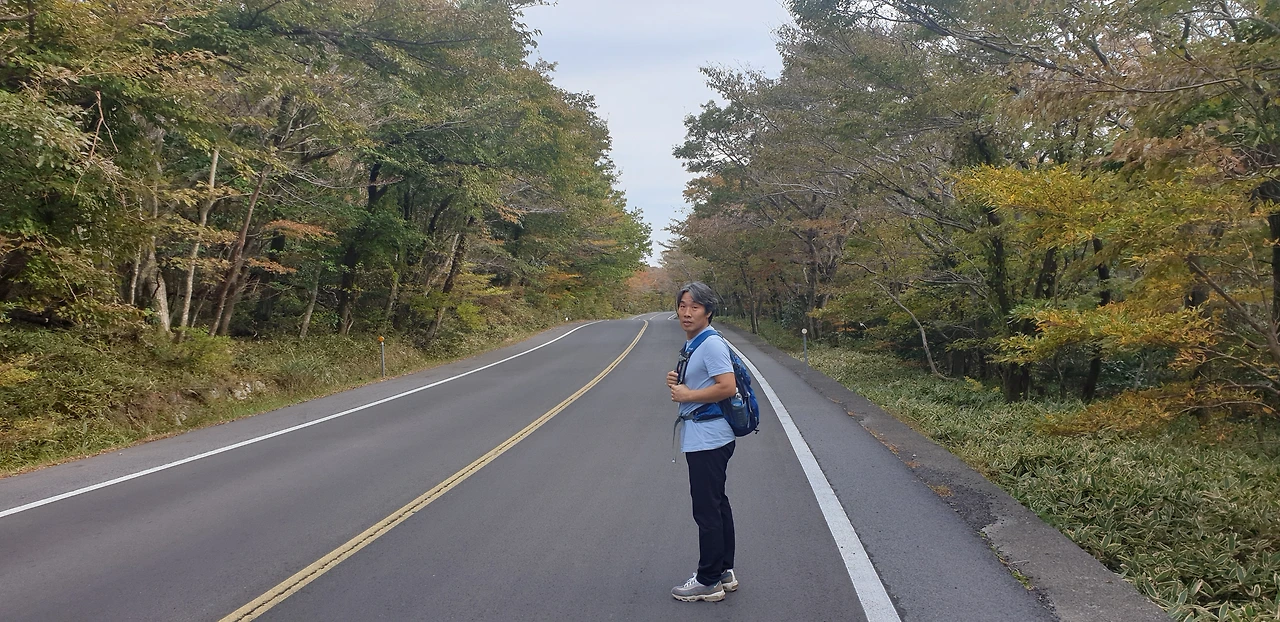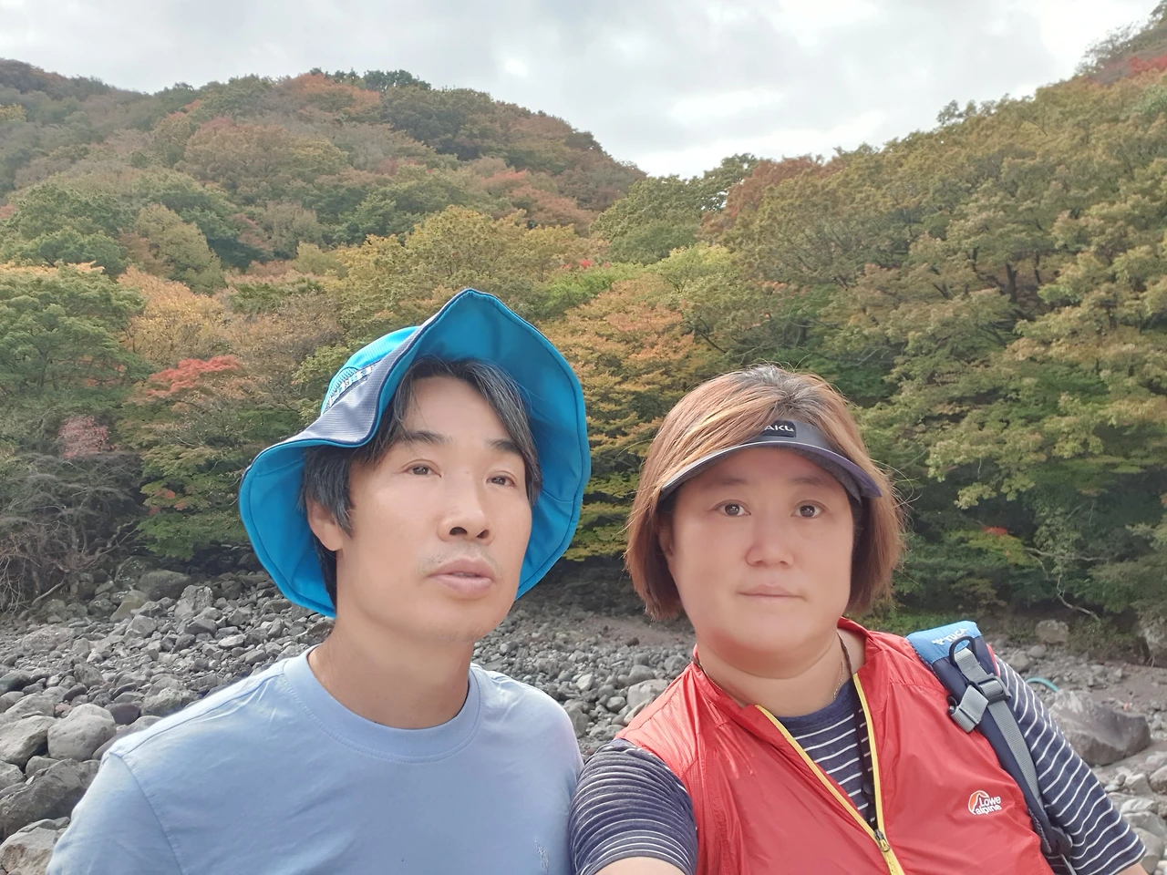 아니나 다를까 지난밤 한라산 대피소에서 자고 오늘 아침 출발해 이 길을 걷고 있다고 알려주었다.