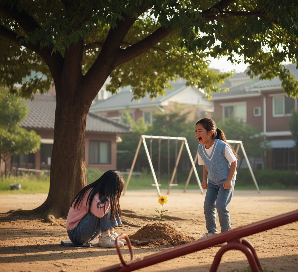 나 혼자 이 무거운 마음을 지키겠다고 다짐했지만, 아홉 살의 어깨에 그건 너무나 무겁고 서러운 일이었다. 흙 묻은 손으로 눈물을 닦으며 시소에 앉아 한참을 울고 있을 때였다.