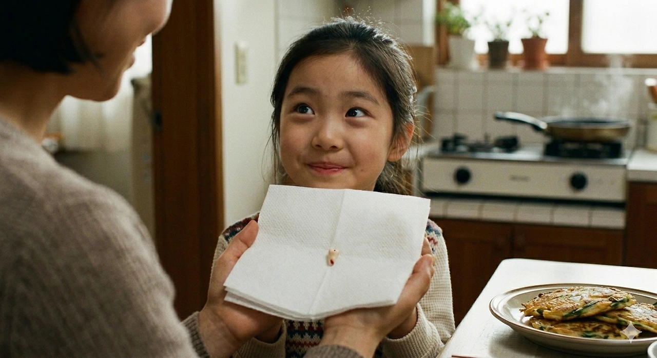 하얀 휴지가 빨갛게 물드는 걸 보니 속이 다 시원했다. 이제 쫀드기를 마음껏 먹어도 된다는 생각에 어깨가 으쓱해졌다. 선생님은 휴지에 감싼 치아를 보물처럼 내 손에 쥐여주셨다. 나는 그걸 날름 받고는 다시 우리 집으로 뛰어 올라갔다.