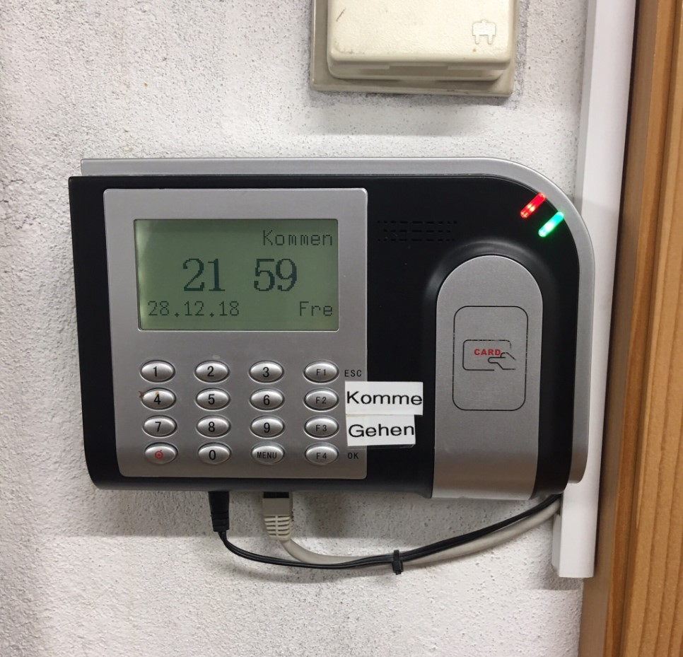 퇴근할 때 Gehen을 버튼을 누르고 다시 한번 카드를 찍어주면, 내가 몇 시부터 몇 시까지 일을 했고 몇 시간 했는지를 알아서 계산이 된다.